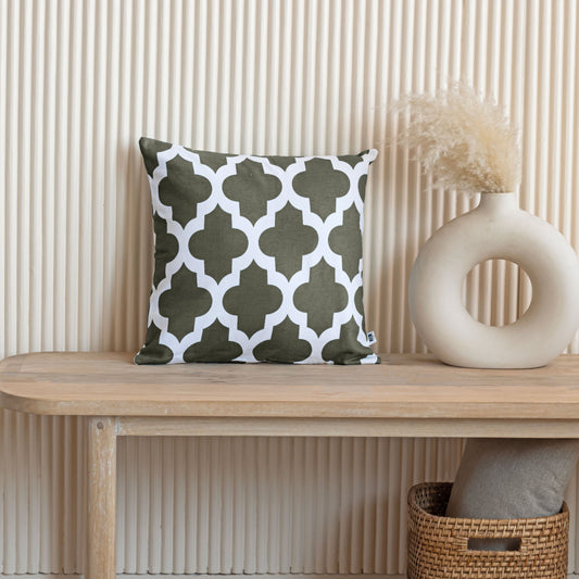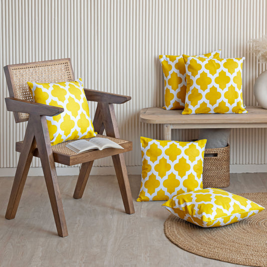 Four-foil print cushion covers are elegant and symmetrical, adding style and balance to any space. Both formal and informal settings benefit greatly from the sophisticated, repeating design. These covers add subtle charm and design harmony to any space, whether you're remodelling your bedroom or updating your drawing room.