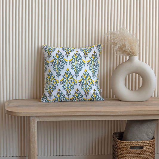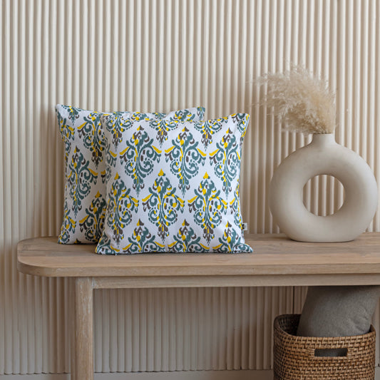 With our ikat print cushion covers, you can add a touch of ethnicity and international charm to your house. Ikat prints, distinguished by their distinctive dyeing method and vivid designs, honour tradition while incorporating a dash of bohemian style. These cushion covers are ideal for home themes that are eclectic, rustic, or culturally inspired. The most selling one in this range is the yellow Ikat print cushion cover.