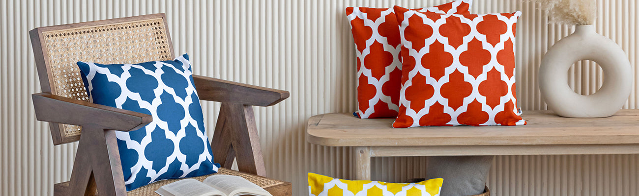 Living rooms, bedrooms, balconies, reading nooks, and even offices are made more lively with printed cushion covers.