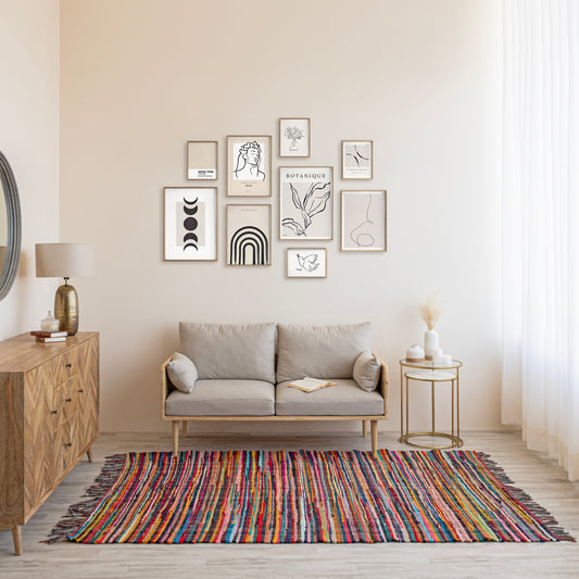 Cotton – Cotton rugs come in the category of soft rugs for the living room. They are comfortable to walk or sit on. Also, these lightweight rugs are easy to maintain and last a long time. There are ample designs and colours in cotton living room rugs online – all giving an appealing look.