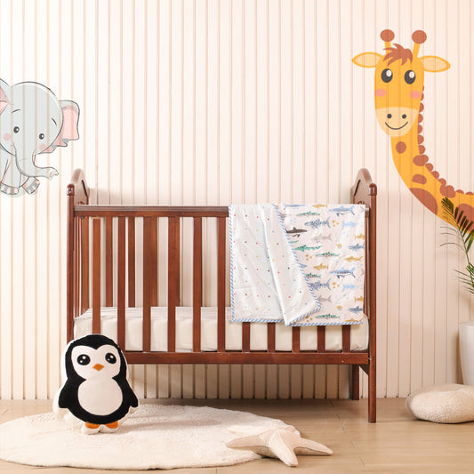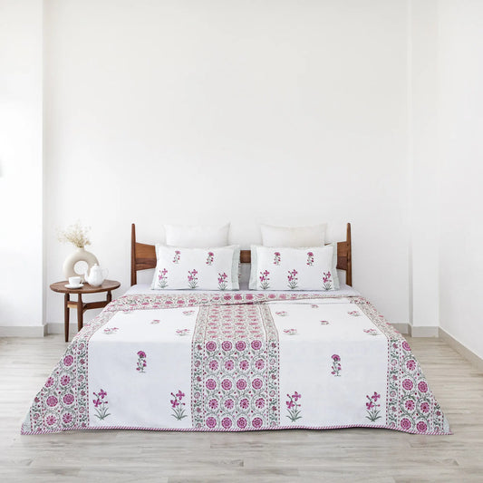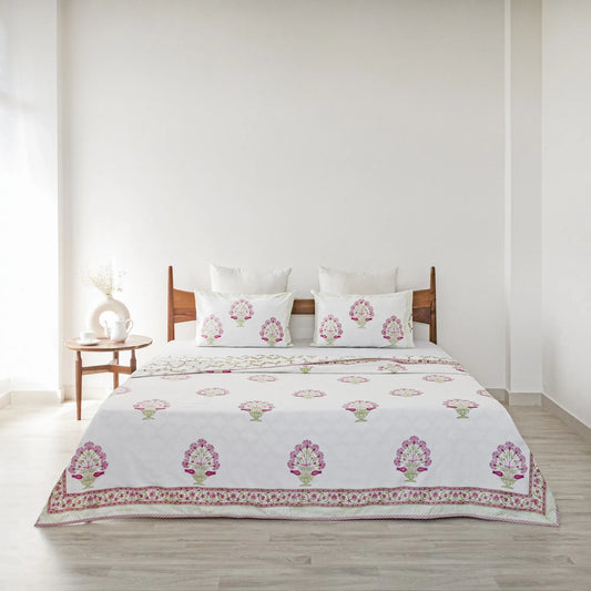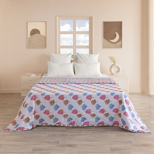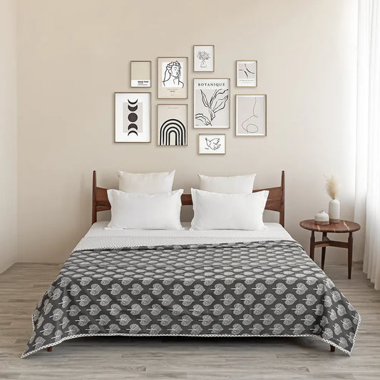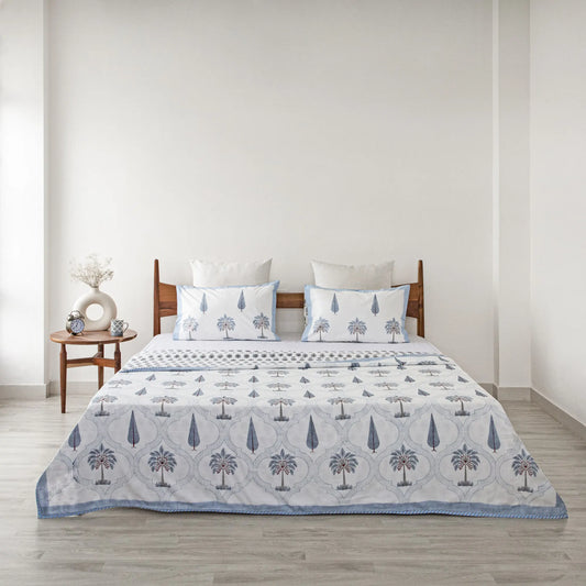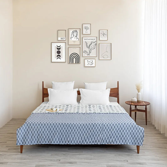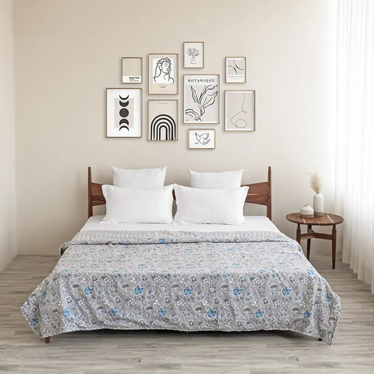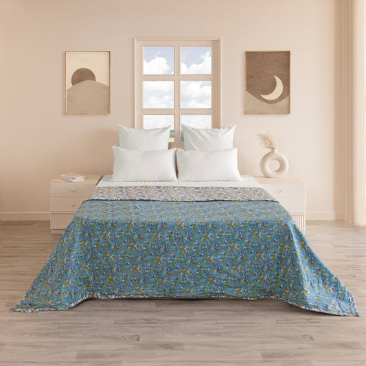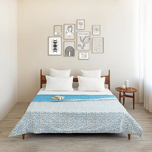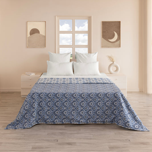 Imprimer Lilac - Leaf Printed Dohar Blanket (Aqua Blue)