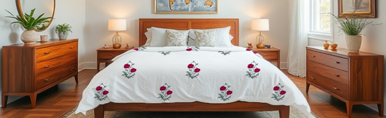 Imprimer Fresco - Floral Printed Dohar (Turquoise & White)