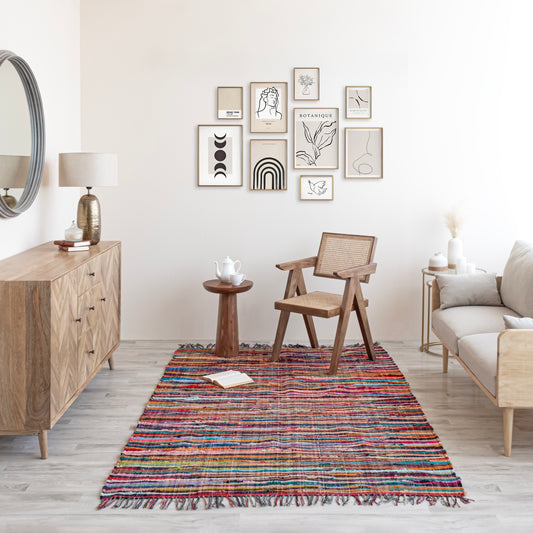 Choose our chindi rugs for decorating your hallways, bedrooms, living rooms, dining areas or children's rooms. Pick the colour combination and shapes that complement the furniture and interior of the room for a stunning final look.