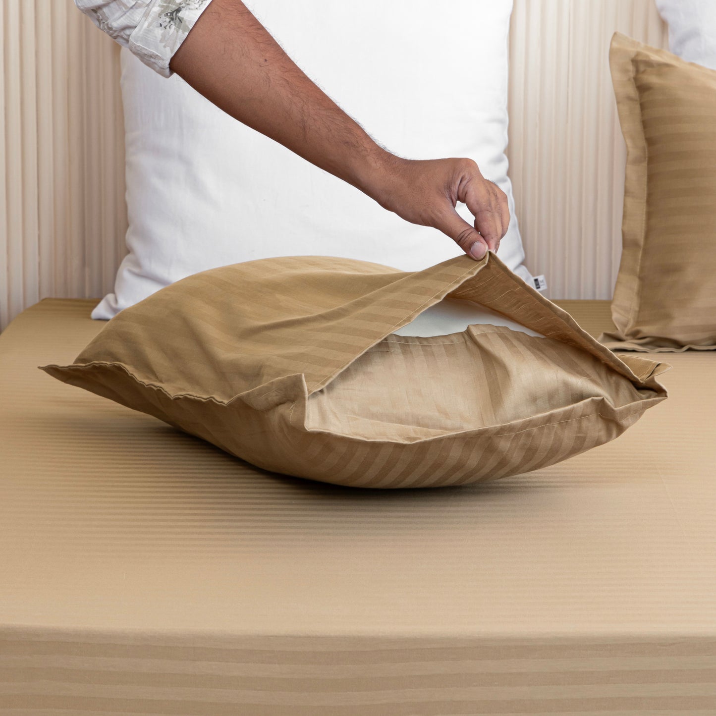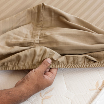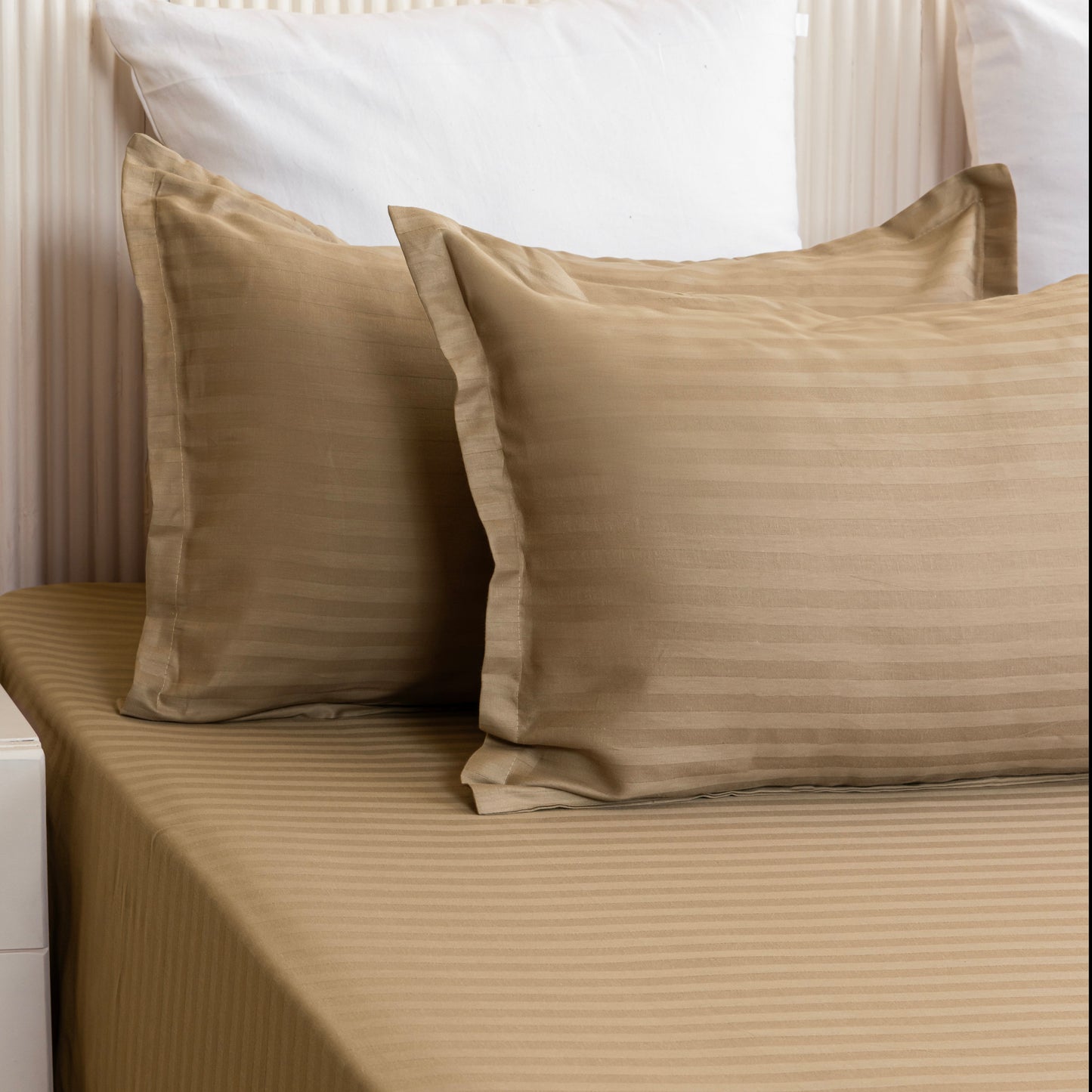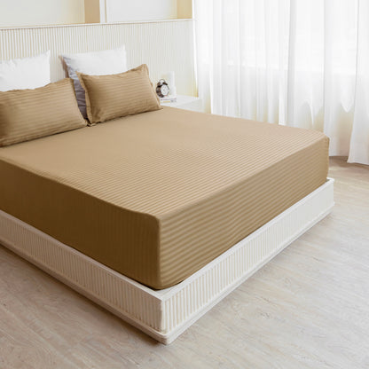 Breton Drift - Satin Stripe Fitted Bedsheet with Pillow Covers (Taupe)