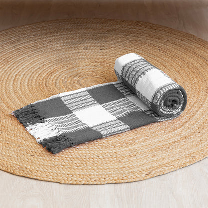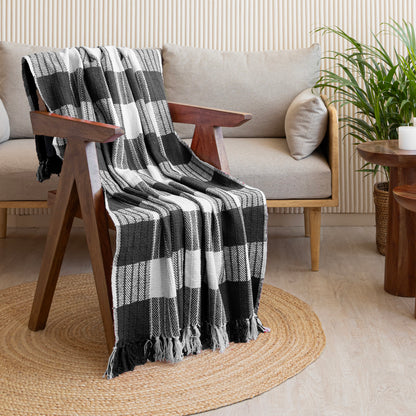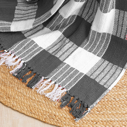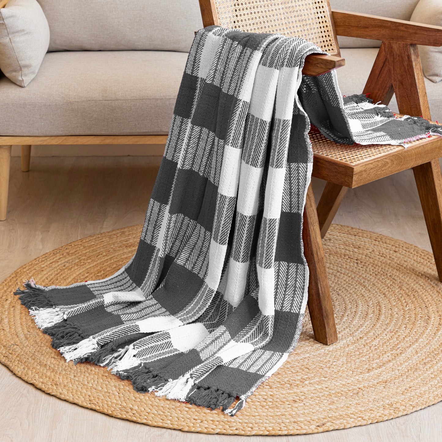 Introducing the Breton Harlequin-Plaid Throw – a luxurious addition to your home decor. Crafted with care from 100% cotton, this handwoven throw blanket combines style with comfort seamlessly. Measuring 60×50 inches, it's perfectly sized for draping over your living room sofa, bed, chair, or as an elegant couch decoration. The timeless Plaid pattern in subtle black and grey adds a touch of sophistication to any space. Whether you're snuggled up on chilly nights or adding a layer of style to your furniture, this throw blanket is versatile and practical. It also makes a thoughtful gift for any occasion, adding warmth and charm to any home. Elevate your interior design with the Breton Harlequin-Plaid Throw– where craftsmanship meets coziness for a truly inviting living space. Read less