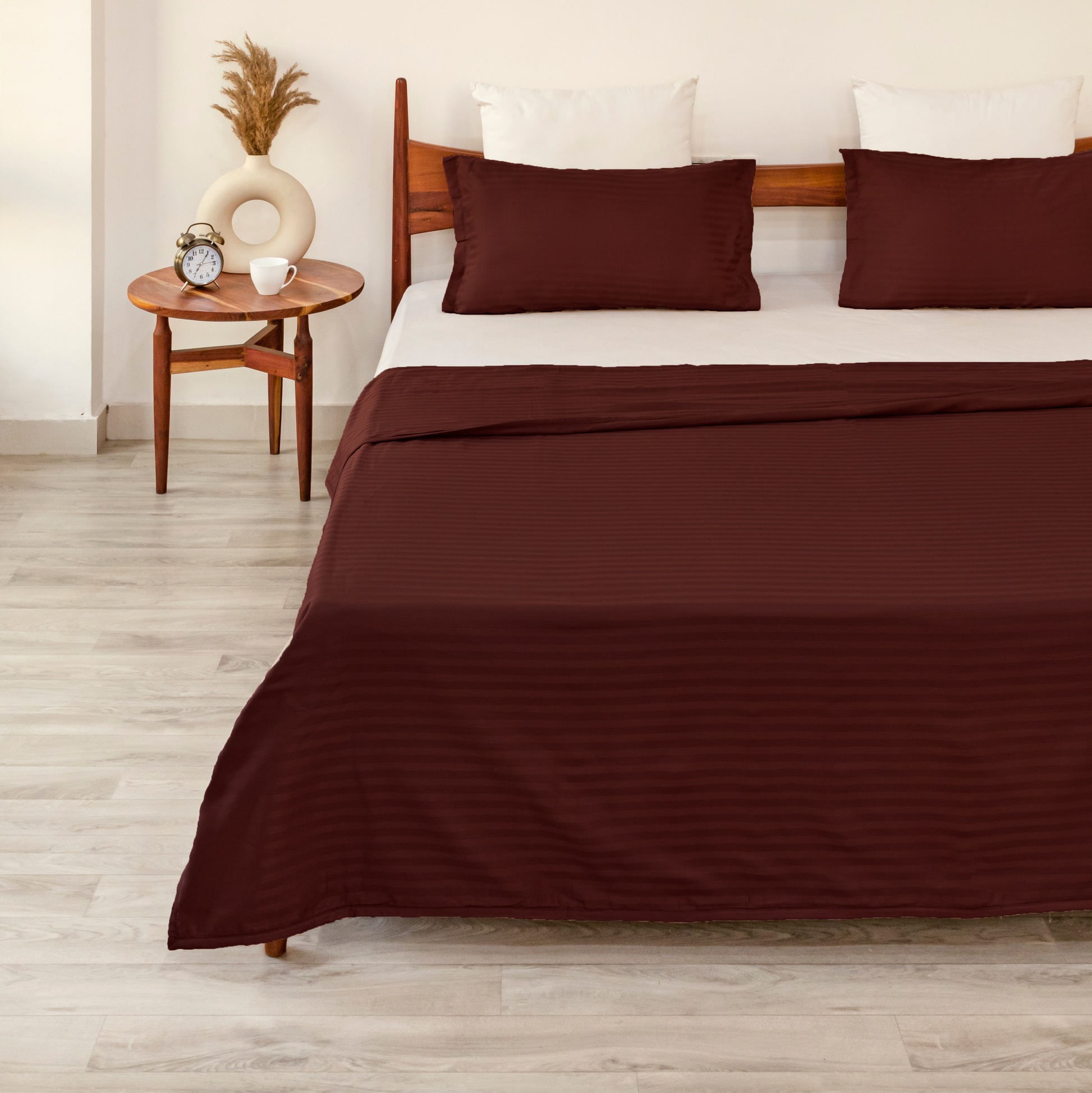 Breton Doze - Satin Stripe Reversible Dohar Blanket (Maroon)