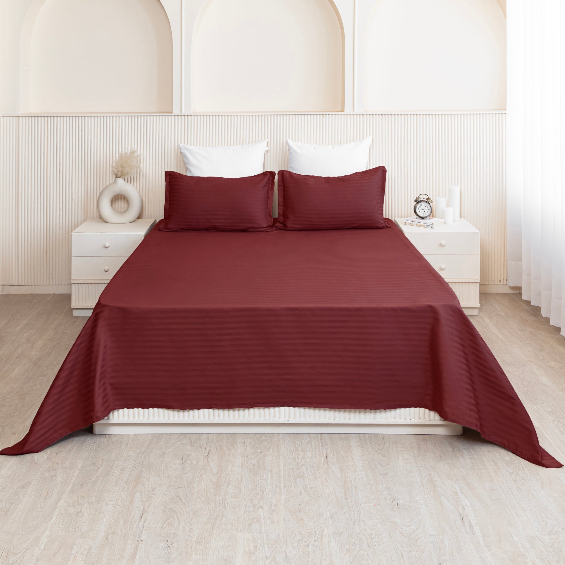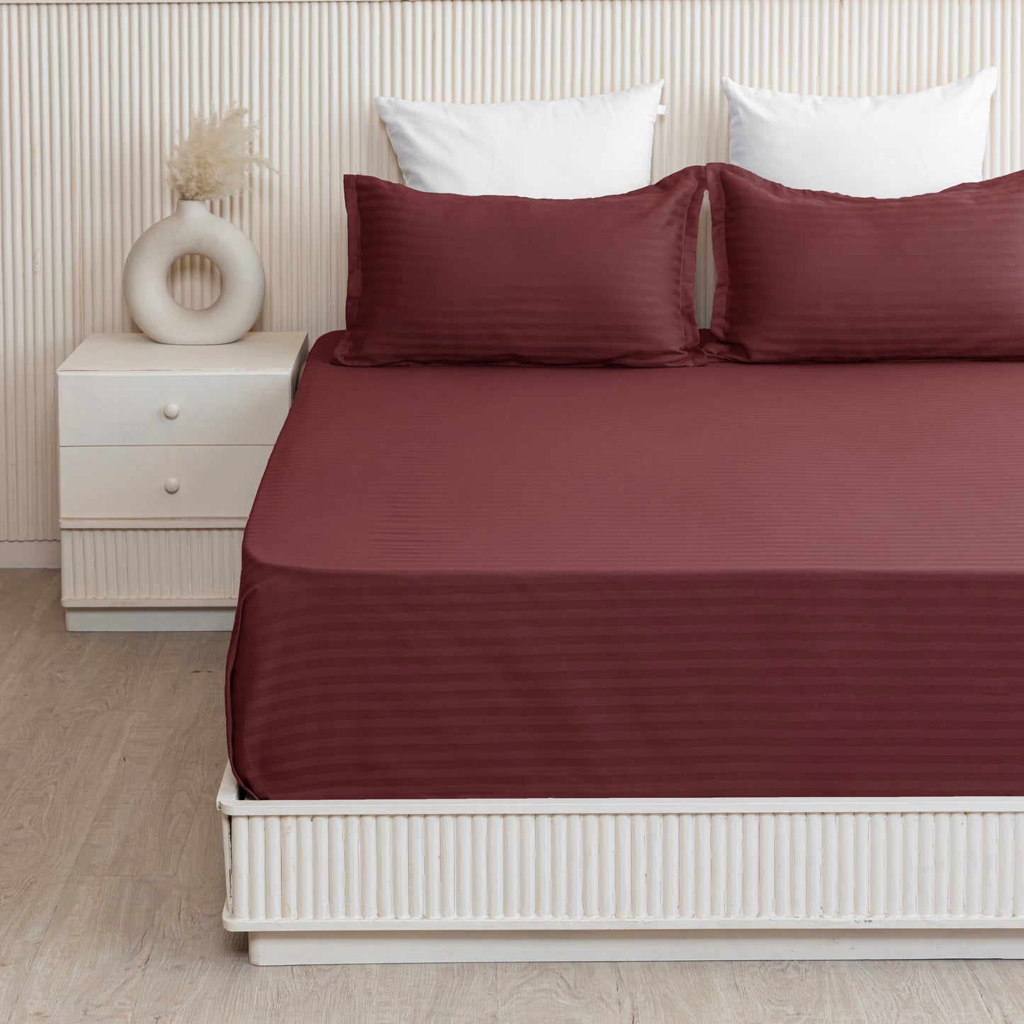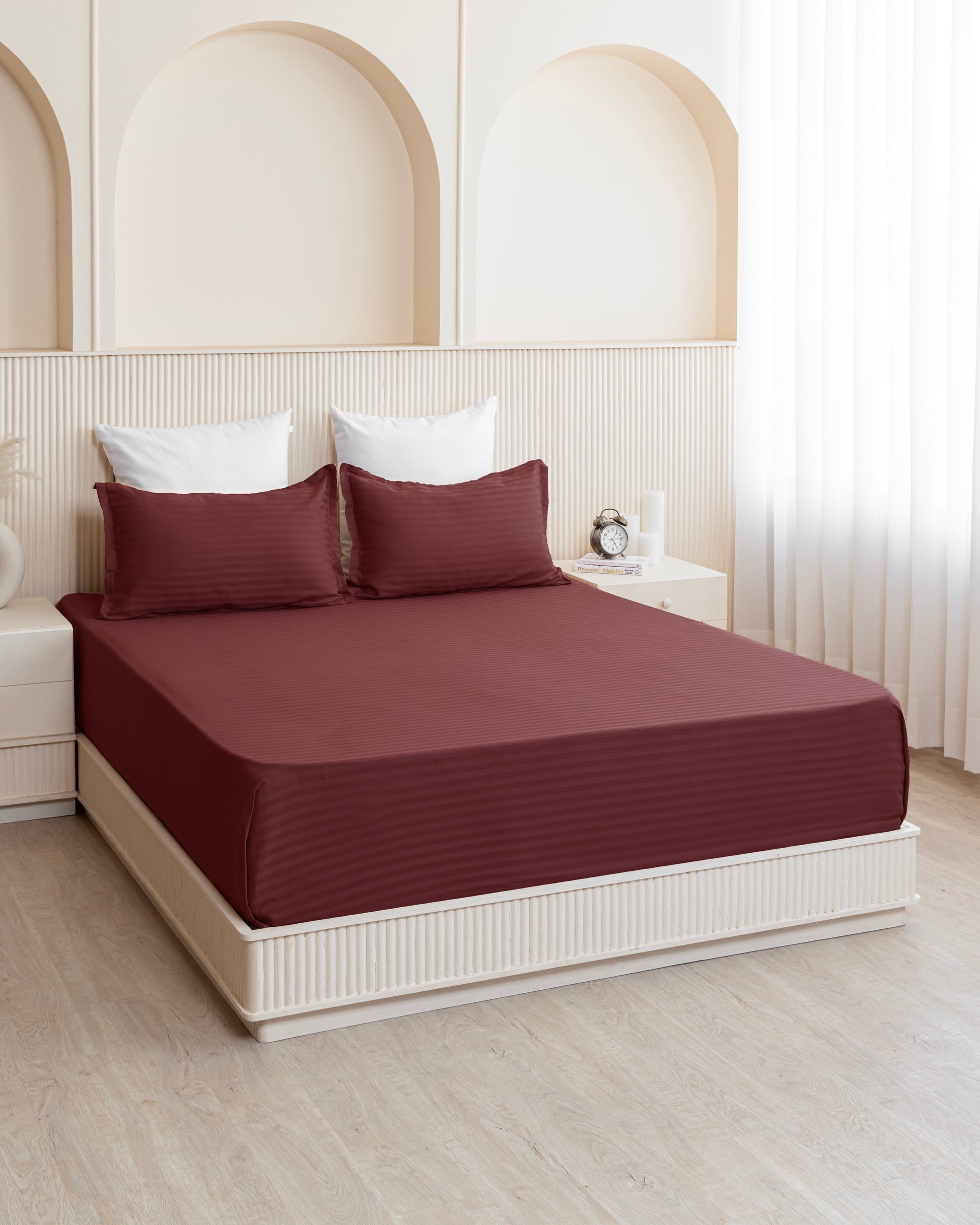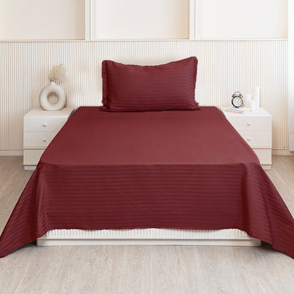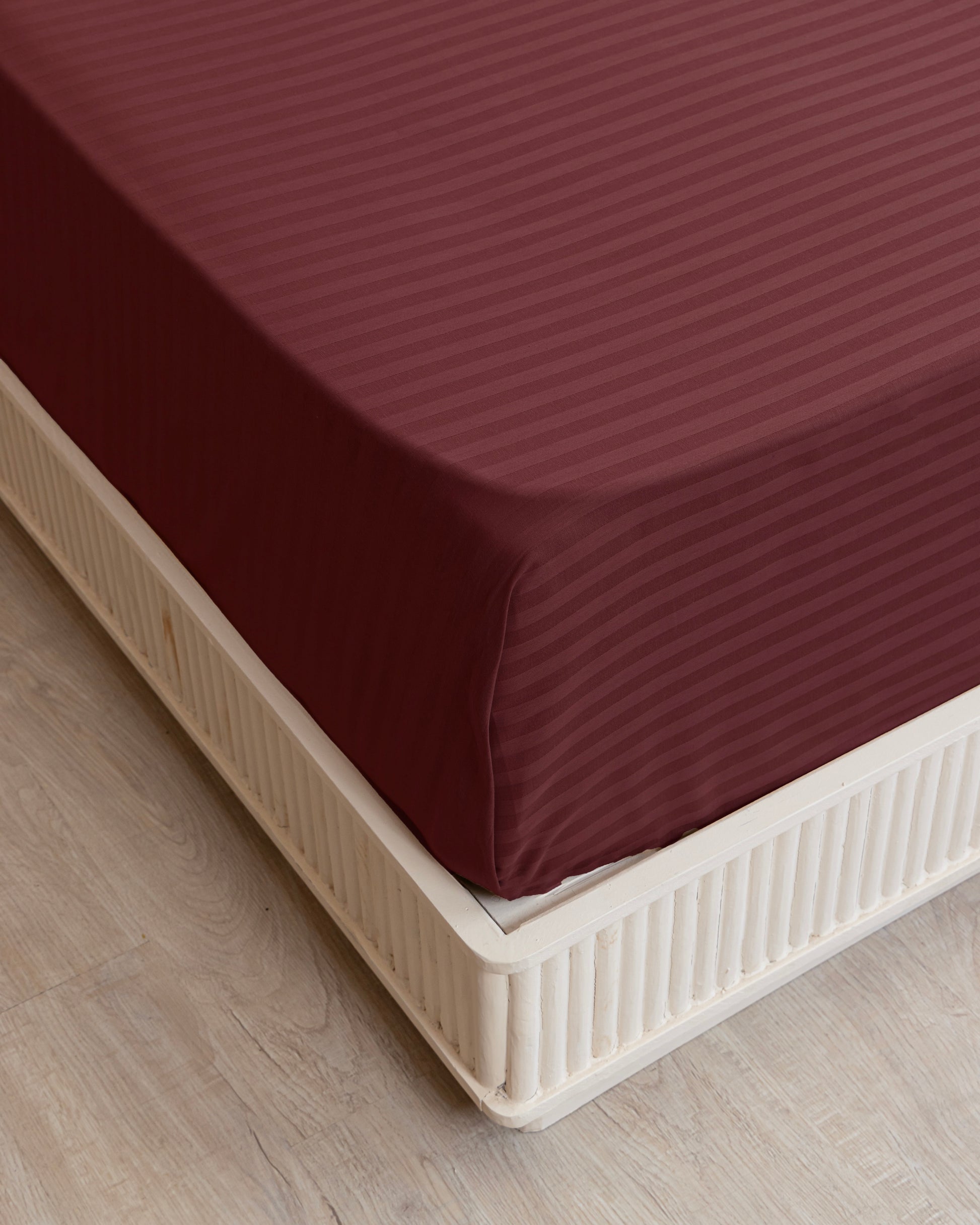 Breton Nap - Satin Stripes Bedsheet (Maroon)