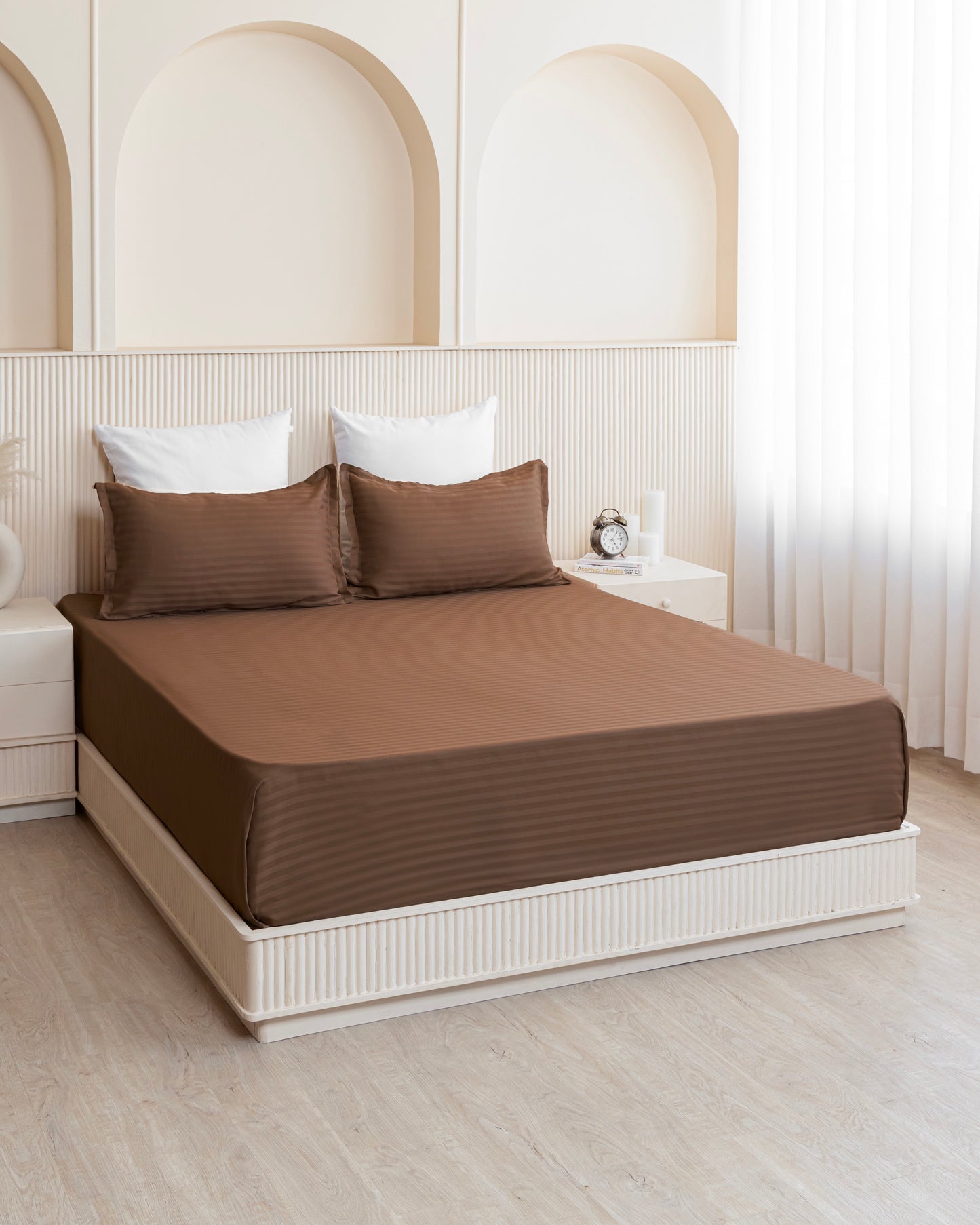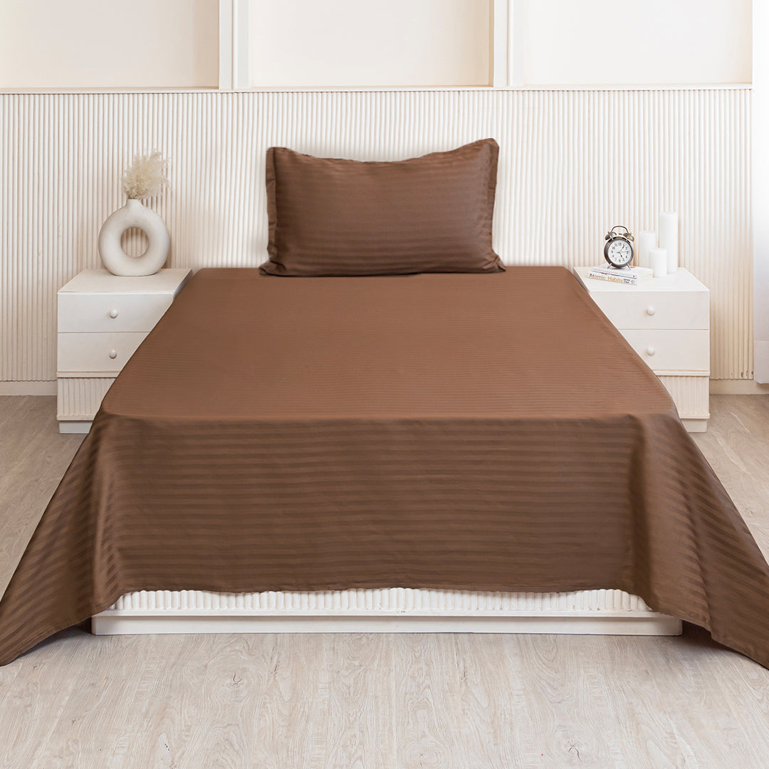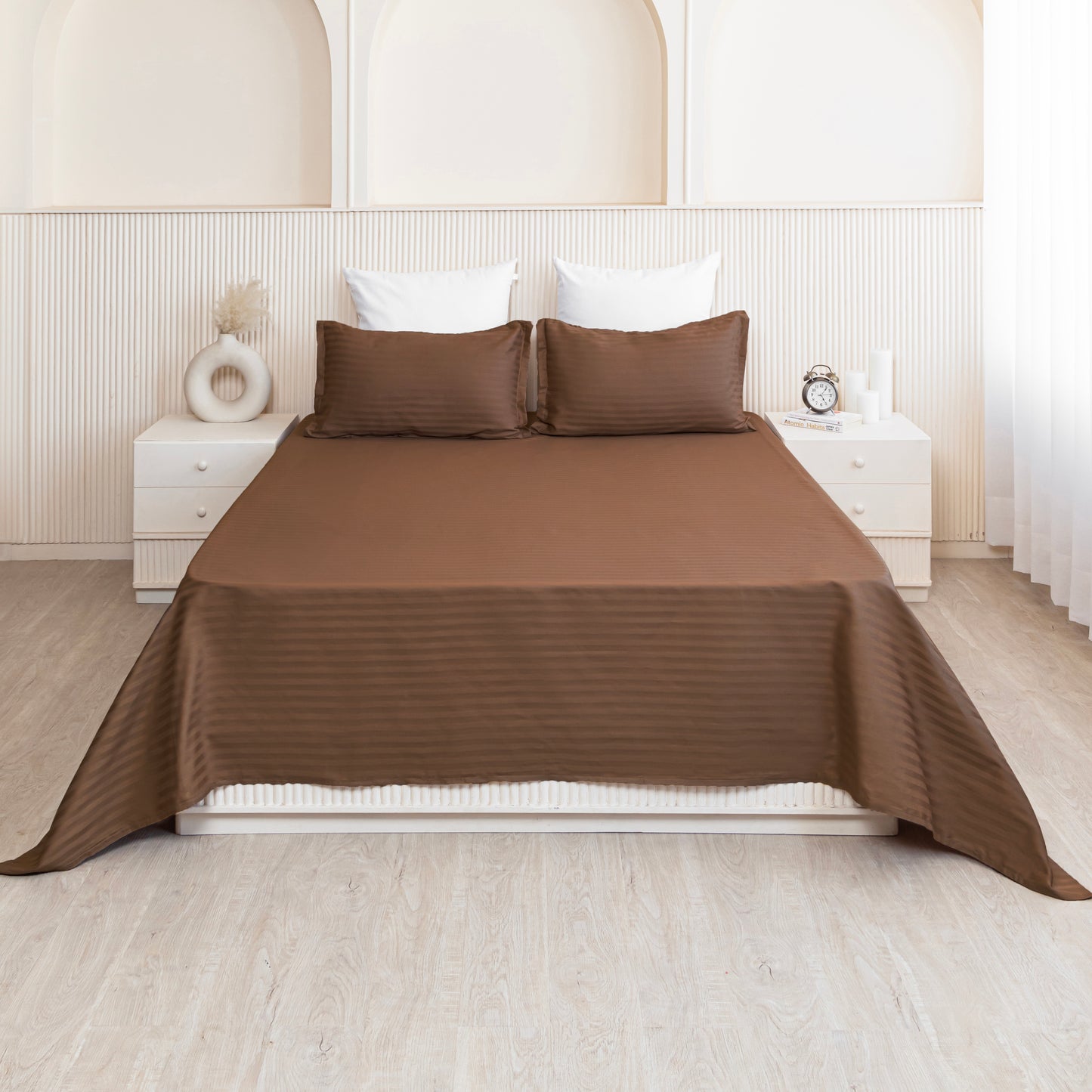 Breton Nap - Satin Stripes Bedsheet (Brown)