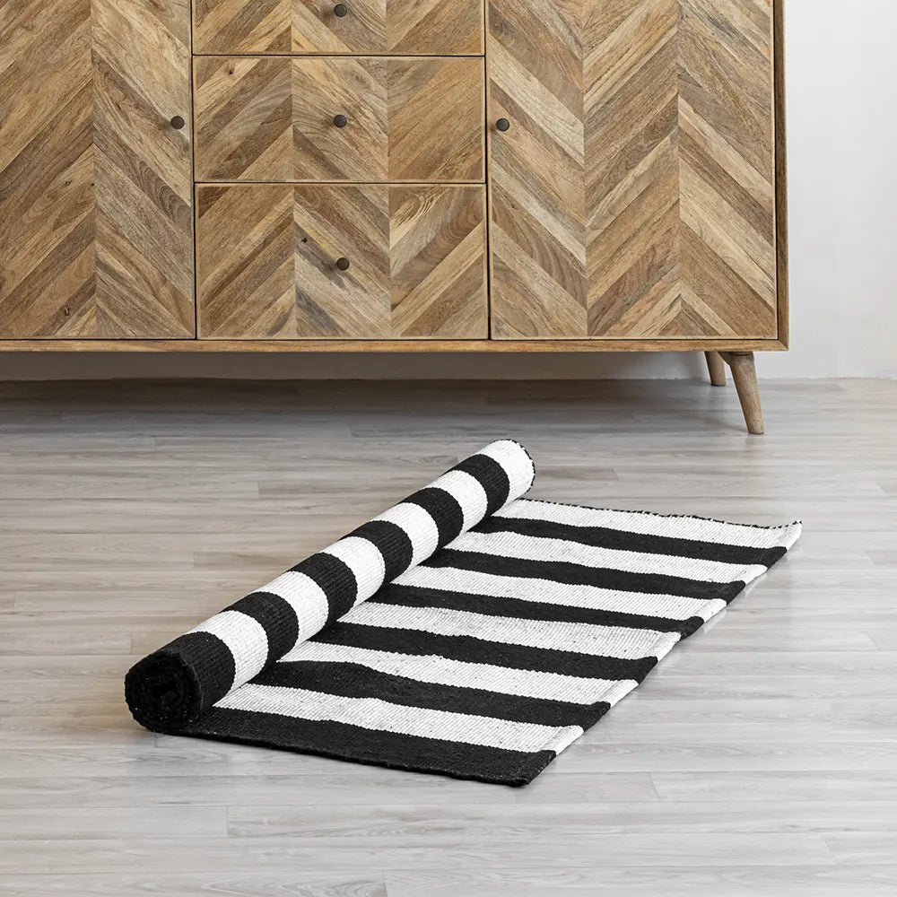 Breton Shadowplay - Plaid Rug (Black & White Stripe)