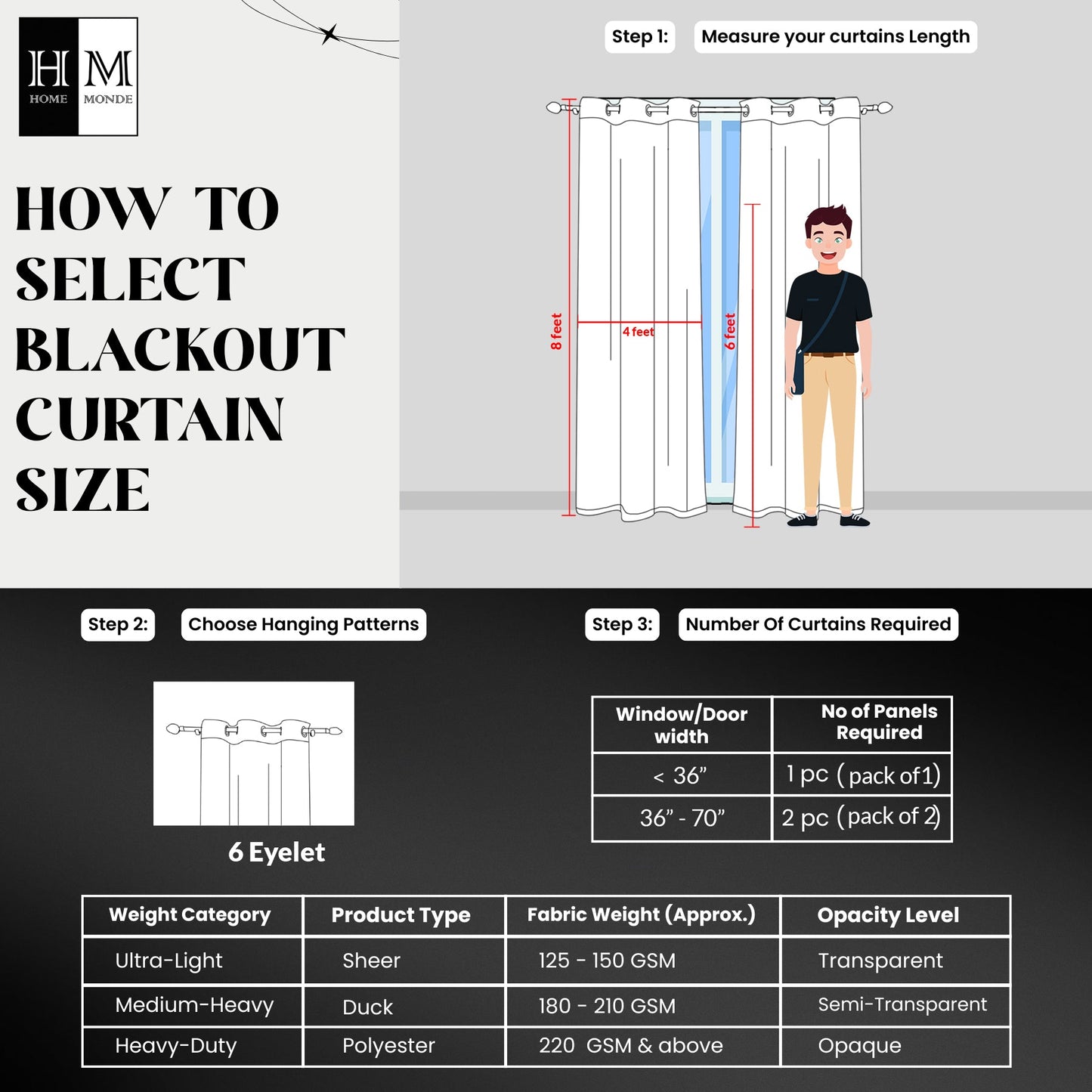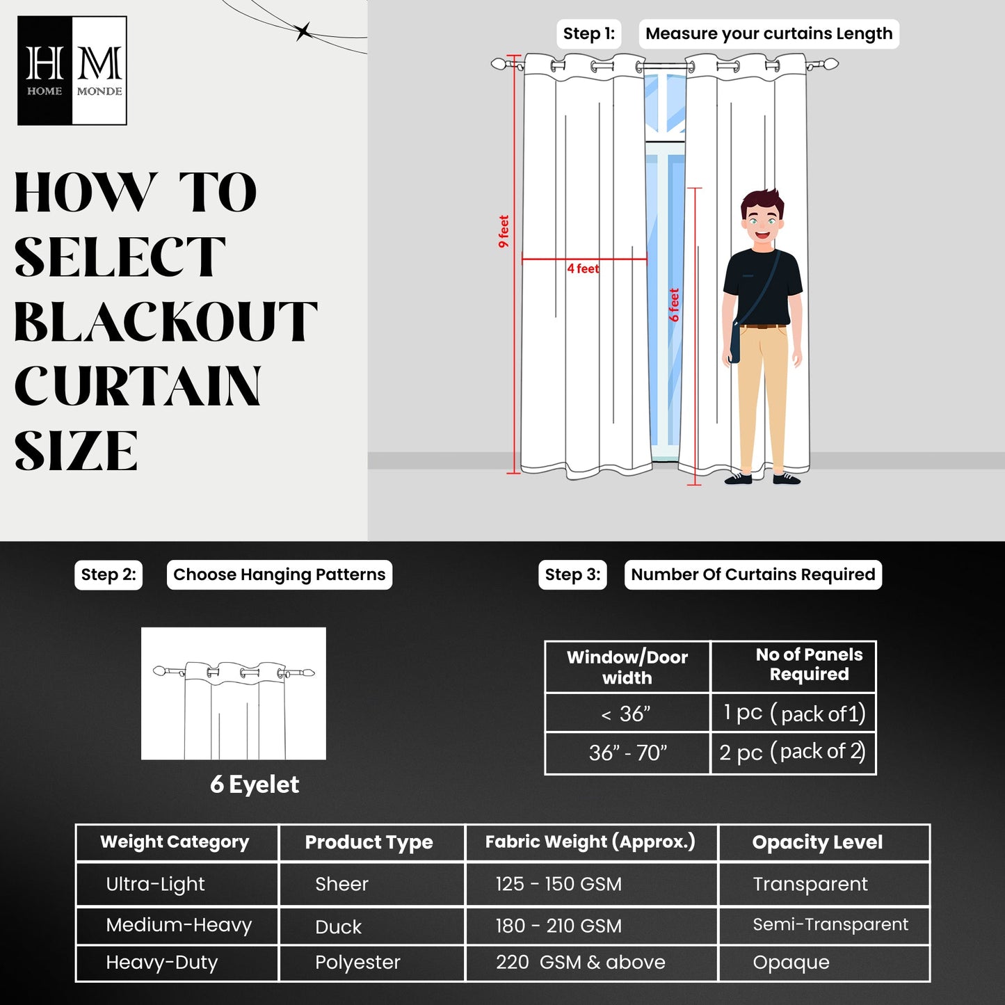 HomeMonde brings a truly exceptional range of complete blackout curtains online. Made from 100% polyester fabric, these blackout curtains benefit you in many ways, enabling you to control light and temperature in your space. Enjoy a higher level of privacy and witness noise reduction by 10β20 dB with these best blackout curtains for nursery bedrooms, living rooms, and office spaces.