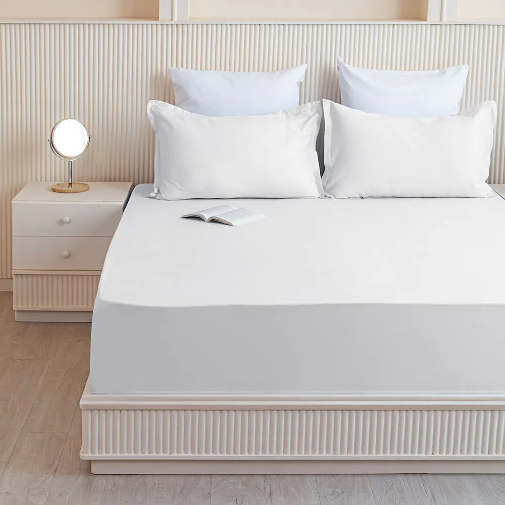 This bedsheet's pristine white color adds a sense of peace and classic elegance to any bedroom, and its 100% premium cotton construction and opulent satin weave provide a smooth sheen and breathable comfort. White creates a calm haven that is ideal for both minimalist modern homes and stylish contemporary interiors because it exudes a feeling of cleanliness, airiness, and refinement. Why Choose White?
