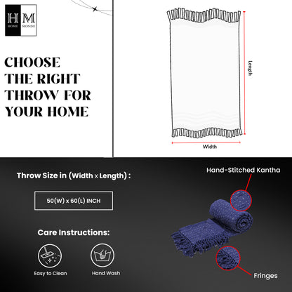 100% Cotton Indian Hand-Stitched Kantha Decorative for Living Room, Couch, Bed, Sofa & Used for Gift