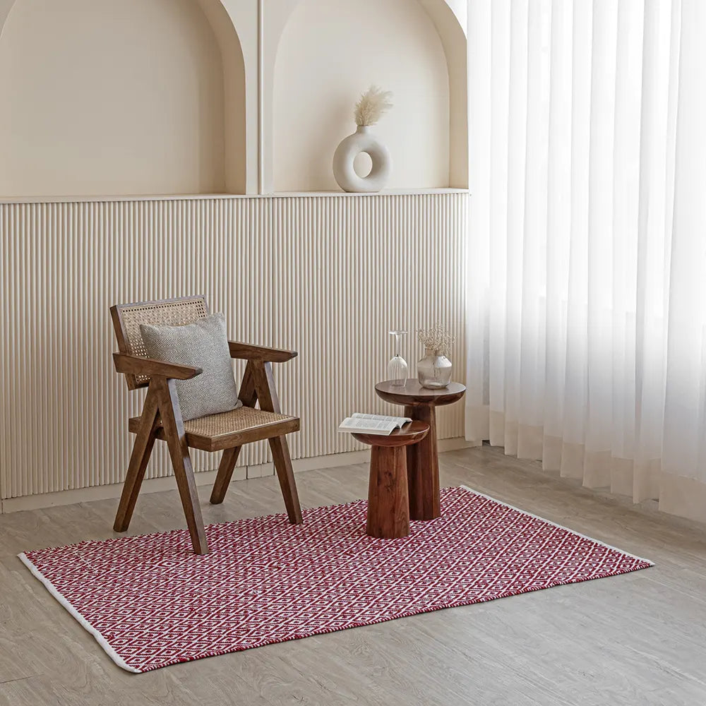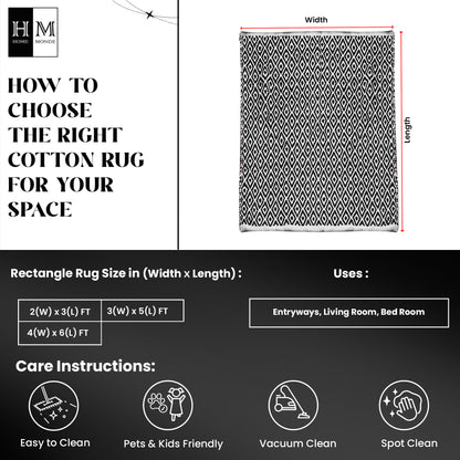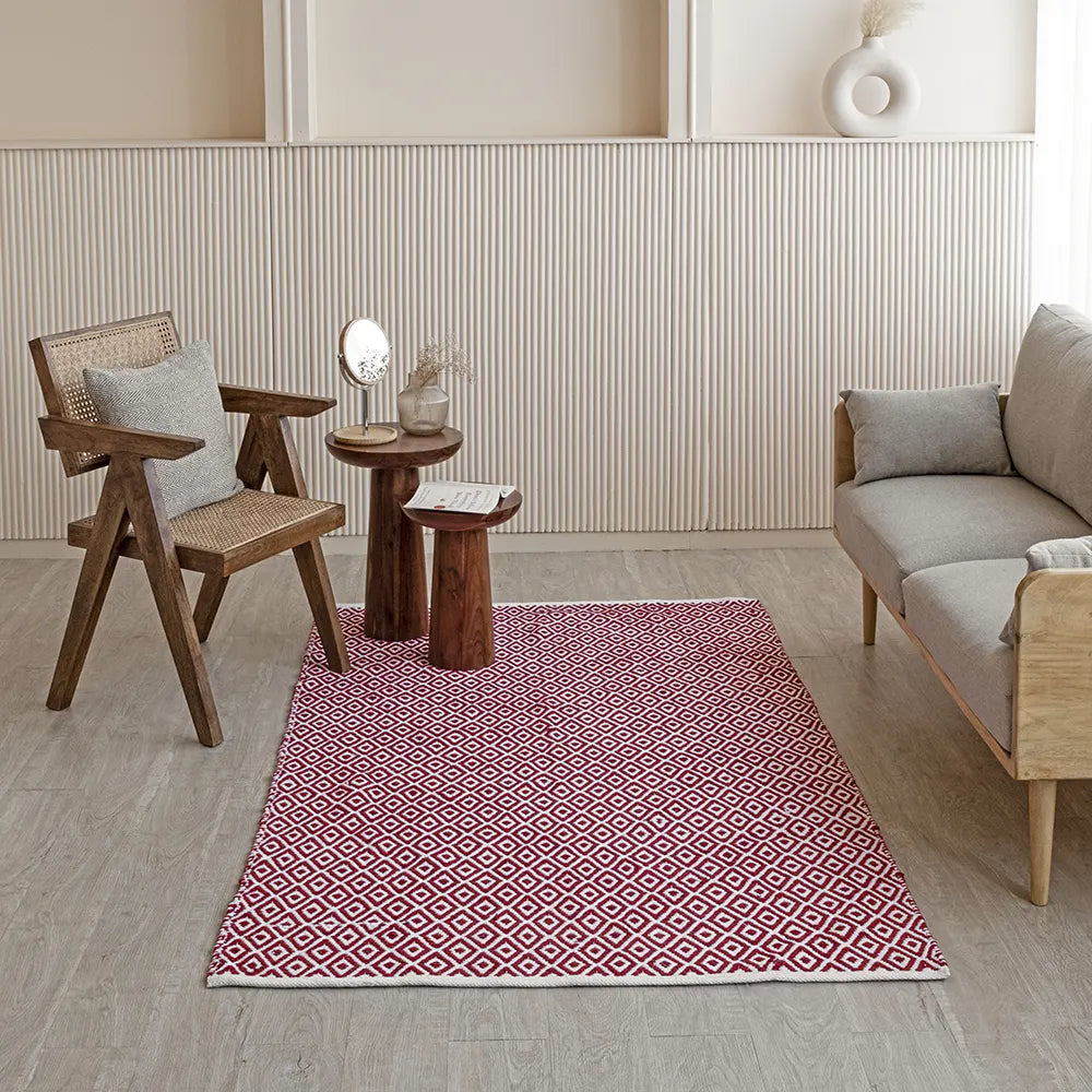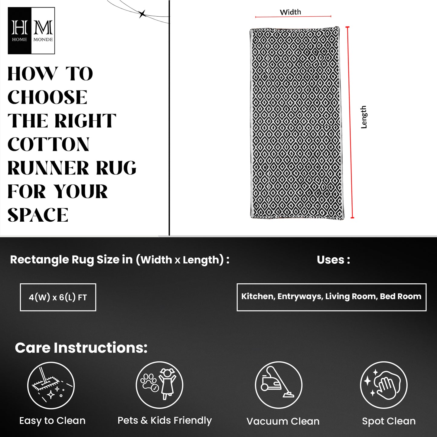 For a stunning makeover of your space, HomeMonde's diamond area rugs are a perfect choice. Featuring a sophisticated diamond design, these cotton rugs are a true luxury that you must get for your bedrooms, living room, dining room, children's room, and hallways. The intricate diamond design of these cotton area rugs is the art of skilled craftsmen, which you can witness only at HomeMonde. HomeMonde's attractive diamond area rugs are made from 100% cotton material, which ensures a soft touch. You can add them to different areas of your house to make them more warm and inviting. You may gently hand clean any stain or dirt with a damp cloth, instead of washing them in machine. Keeping in mind the different interiors of every house, HomeMonde offers cotton diamond rugs in black, grey, blue, red, and mustard colours. You can choose the colour option that you know will adorn your house's interior in a way that captures everyone's heart. Read less