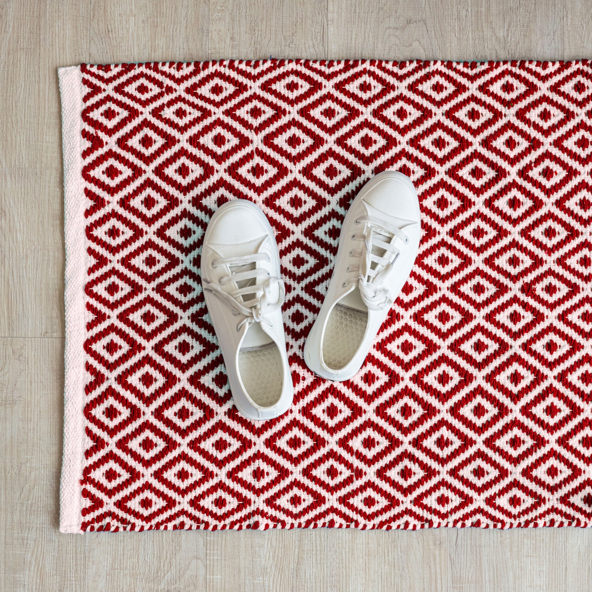 Tessitura Confetti - Diamond Cotton Rug (Red & White)