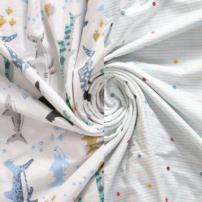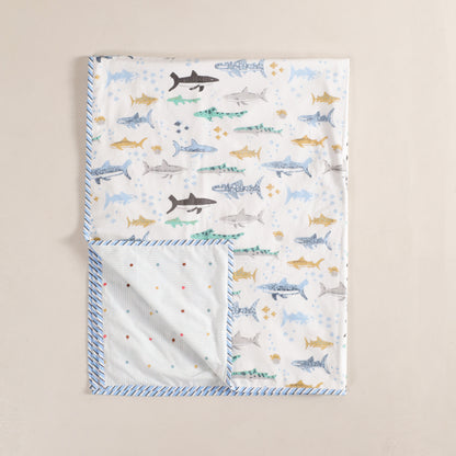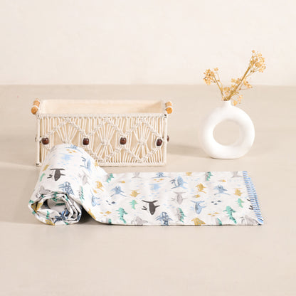HomeMonde’s baby cotton Dohar is as warm and cosy as a mother’s hug. Made from 100% cotton, they are highly breathable and comforting. Designed with three ultra-soft layers, our baby dohar blanket ensures your baby stays warm in winters and cool in summers. Perfect to use throughout the year, have it to cover your baby when sleeping under direct AC cooling or when extra warmth is needed during the colder season. Ideal for newborns to 4-year-olds, you can use our baby dohar as a crib blanket, stroller cover, nursing cover, playmat, or toddler bedspread. Featuring adorable colours and prints like Dreamy Bear, Dino Adventure, Baby Blue Hunter, and Tender Tales, they look beautiful in every baby's nursery. Plus, the reversible baby dohar design allows you to use them from both sides, adding extra versatility. Being machine washable, you can put HomeMonde’s cotton dohar for baby in a machine for hassle-free cleaning. The fade-resistant colours, premium stitching quality, and top-notch fabric of our baby dohars online tick marks durability with no compromise on softness and look. Read less