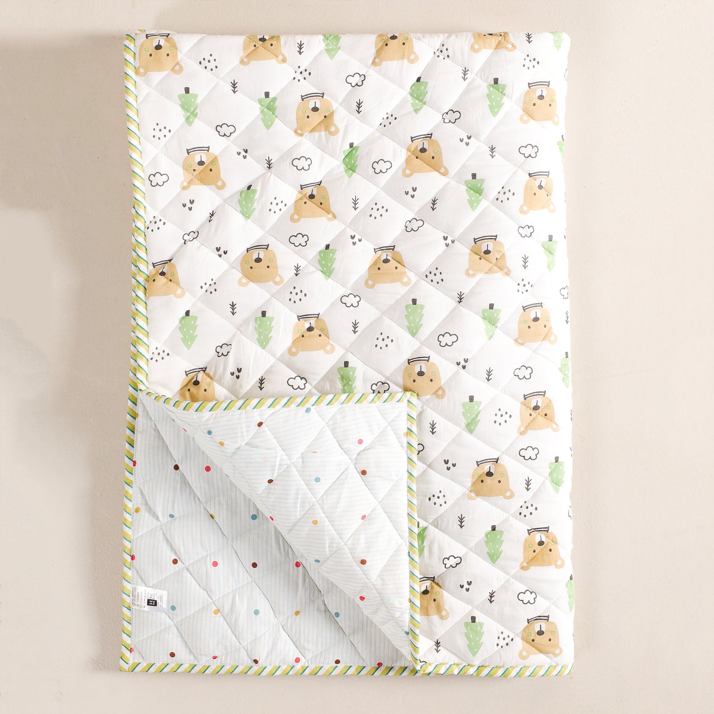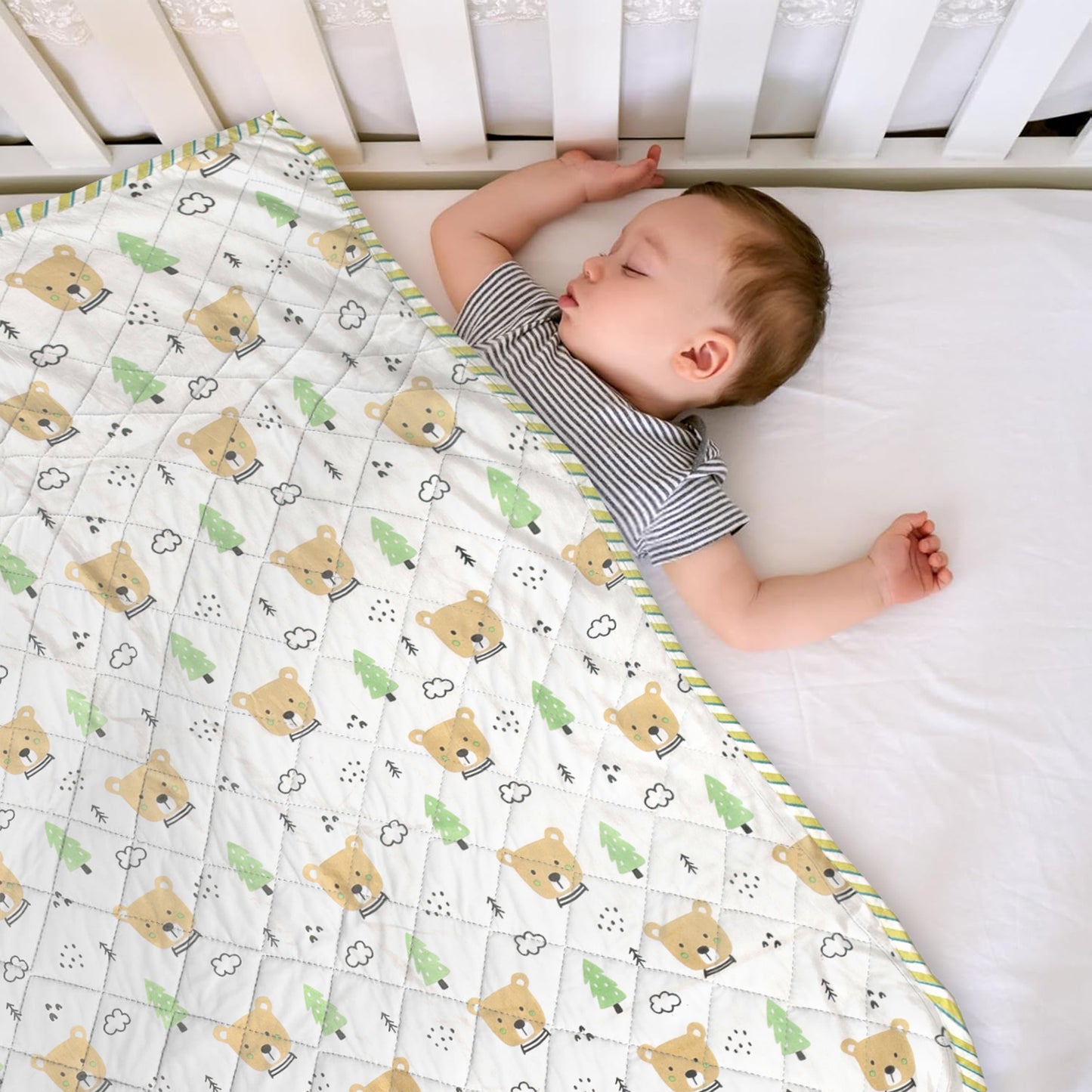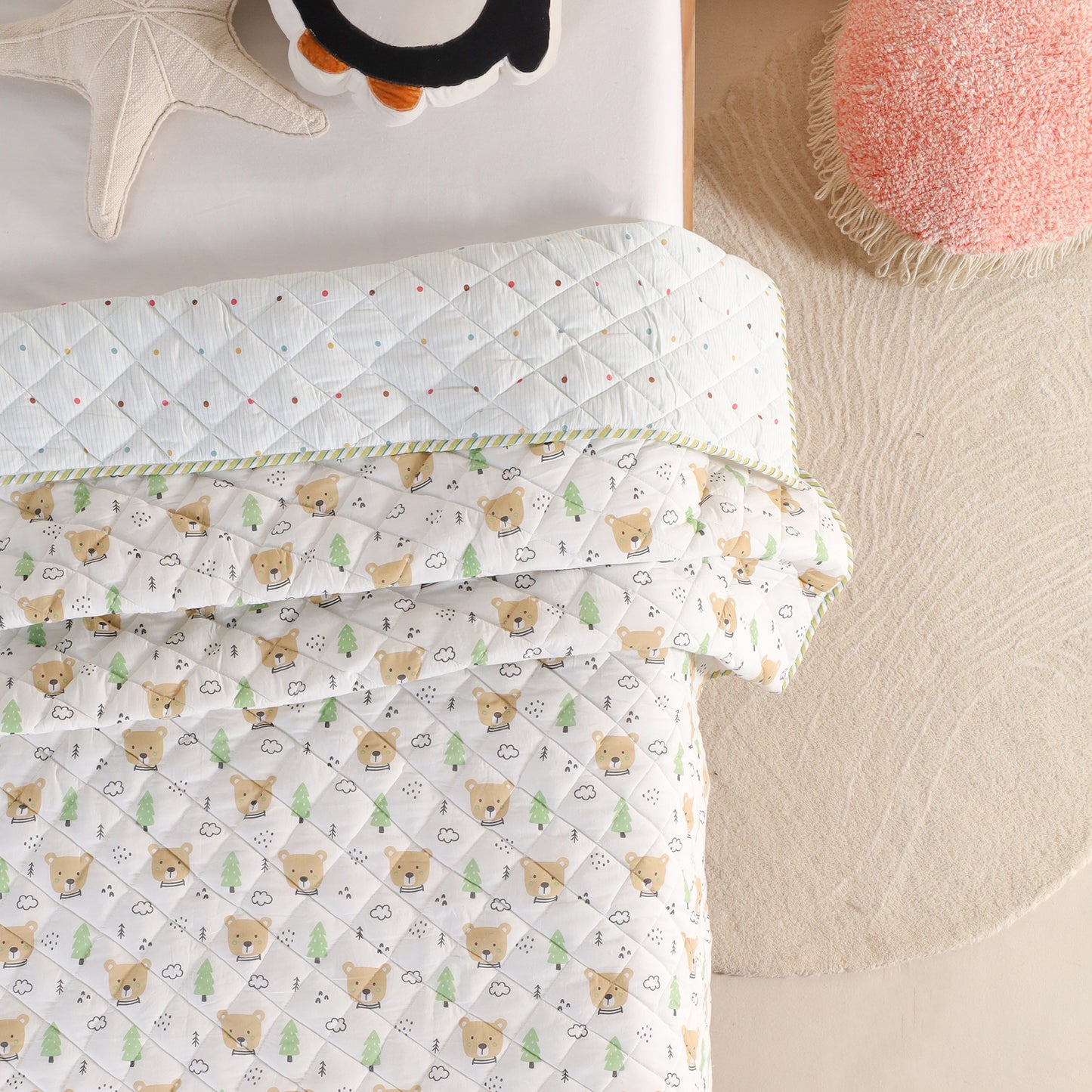 HomeMonde’s baby blankets are to provide babies with cosy warmth that helps them sleep comfortably. Made from 100% cotton, they are soft to touch, highly breathable and extremely comfy. Designed with premium triple-layered cotton, you can use them as a blanket, comforter, stroller blanket or baby wrap. We have designed our baby blankets for year-round use. They are perfect for mild winters, AC rooms and layering during extreme cold seasons. To suit every requirement, there are multiple size options available. The reversible design allows you to use them from both sides. Our modern baby blankets come in adorable prints like Dreamy Bear, Dino Adventure, Baby Blue Hunter, and Tender Tale to perfectly suit every baby’s nursery. Best for gifting at baby showers, our Cotton Baby Blankets are perfect for newborns and toddlers aged 0-5. Being free from harmful chemicals, they are gentle on the baby’s skin. There’s no hassle involved in maintaining them, as they are machine washable and feature fade-resistant colours. Give your baby warmth and love with HomeMonde's soft baby blankets. Read less