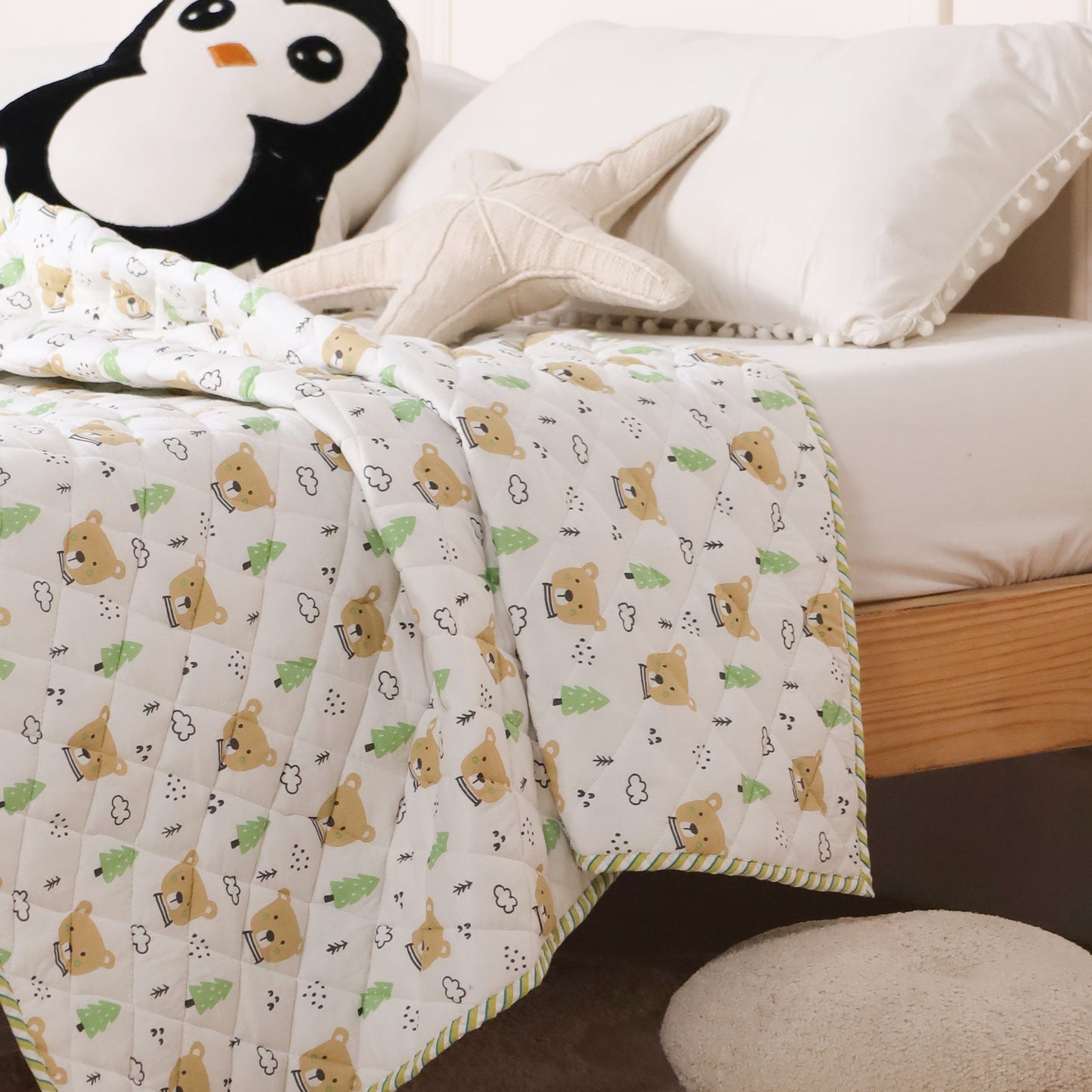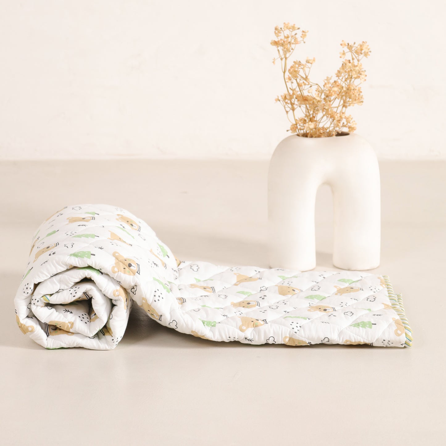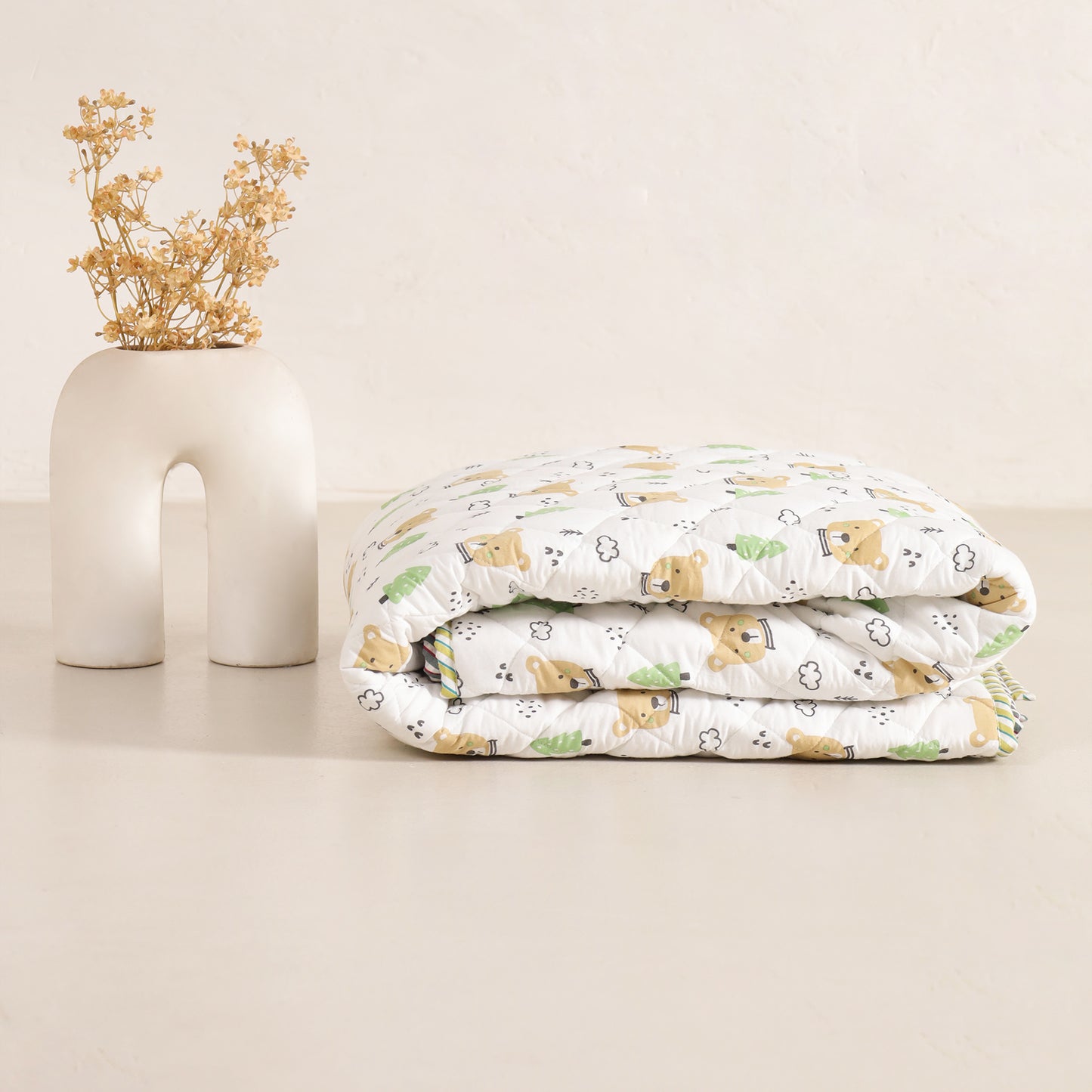 HomeMonde’s baby blankets are to provide babies with cosy warmth that helps them sleep comfortably. Made from 100% cotton, they are soft to touch, highly breathable and extremely comfy. Designed with premium triple-layered cotton, you can use them as a blanket, comforter, stroller blanket or baby wrap. We have designed our baby blankets for year-round use. They are perfect for mild winters, AC rooms and layering during extreme cold seasons. To suit every requirement, there are multiple size options available. The reversible design allows you to use them from both sides. Our modern baby blankets come in adorable prints like Dreamy Bear, Dino Adventure, Baby Blue Hunter, and Tender Tale to perfectly suit every baby’s nursery. Best for gifting at baby showers, our Cotton Baby Blankets are perfect for newborns and toddlers aged 0-5. Being free from harmful chemicals, they are gentle on the baby’s skin. There’s no hassle involved in maintaining them, as they are machine washable and feature fade-resistant colours. Give your baby warmth and love with HomeMonde's soft baby blankets. Read less