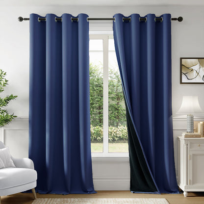 Fort Essential - Black Backing Solid Blackout Curtain (Navy Blue)