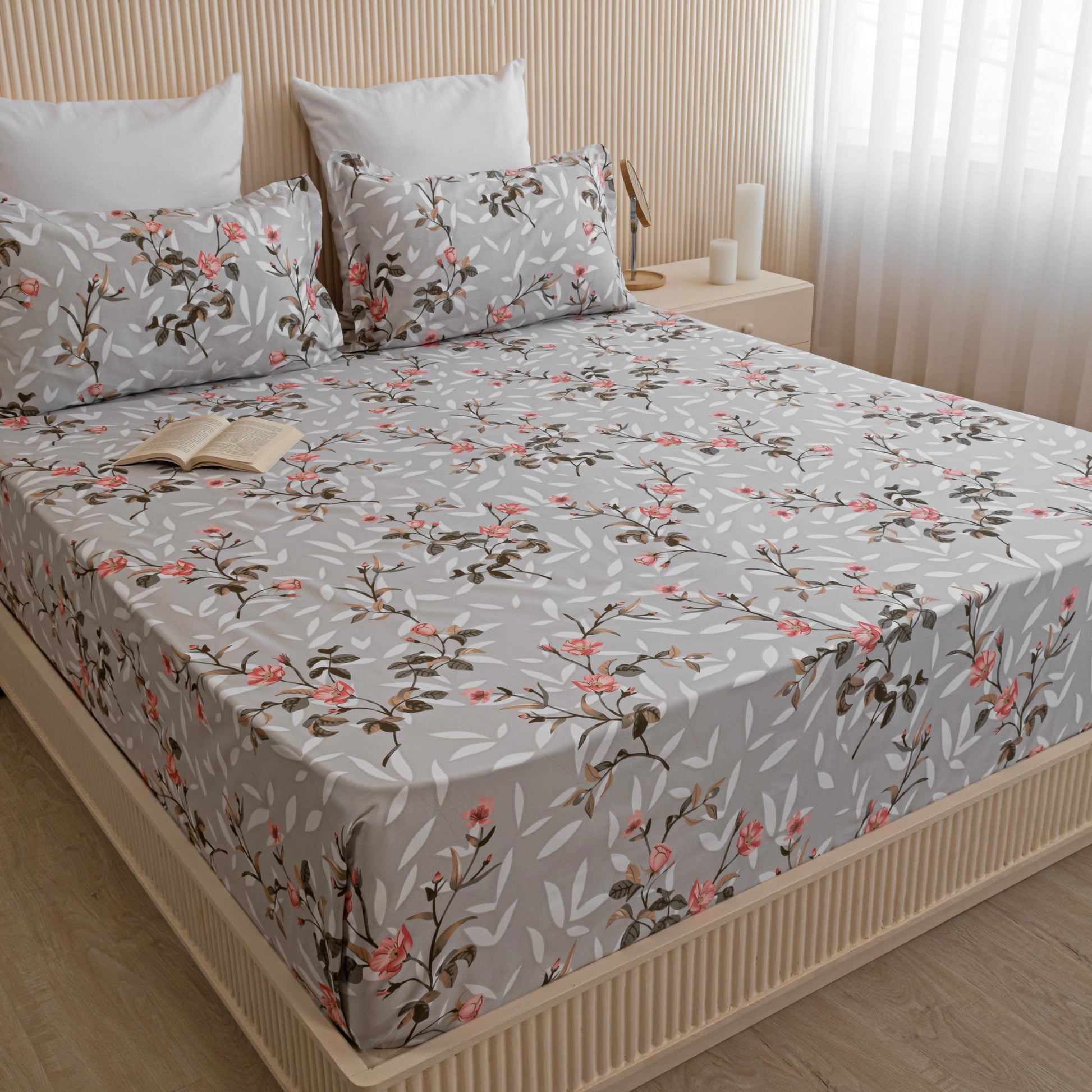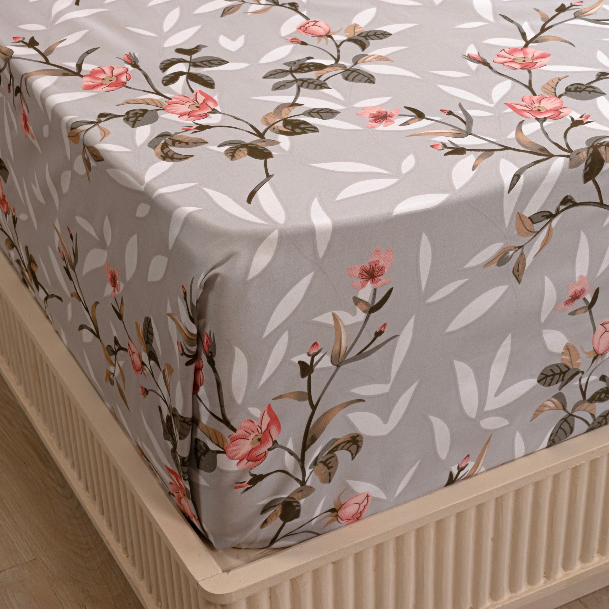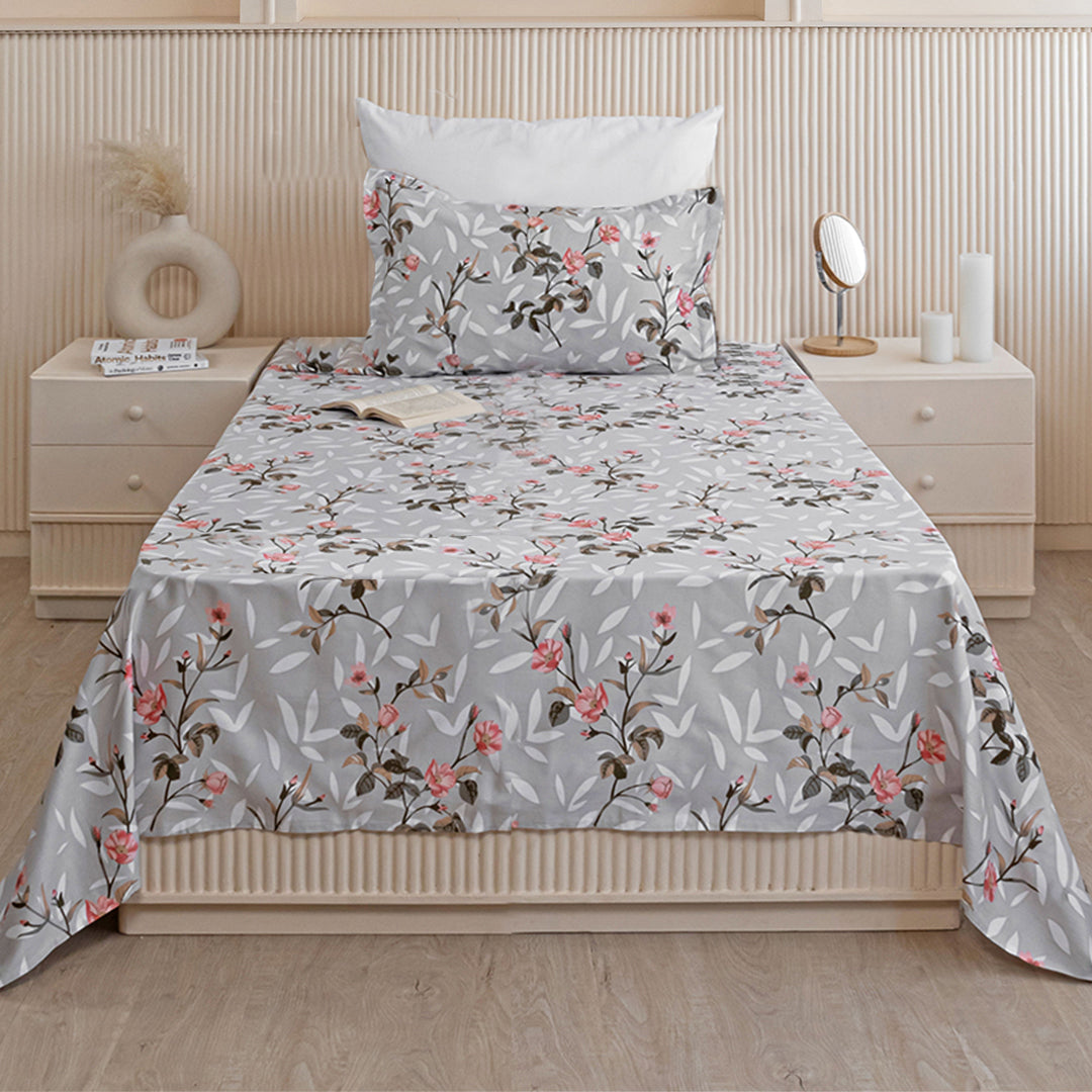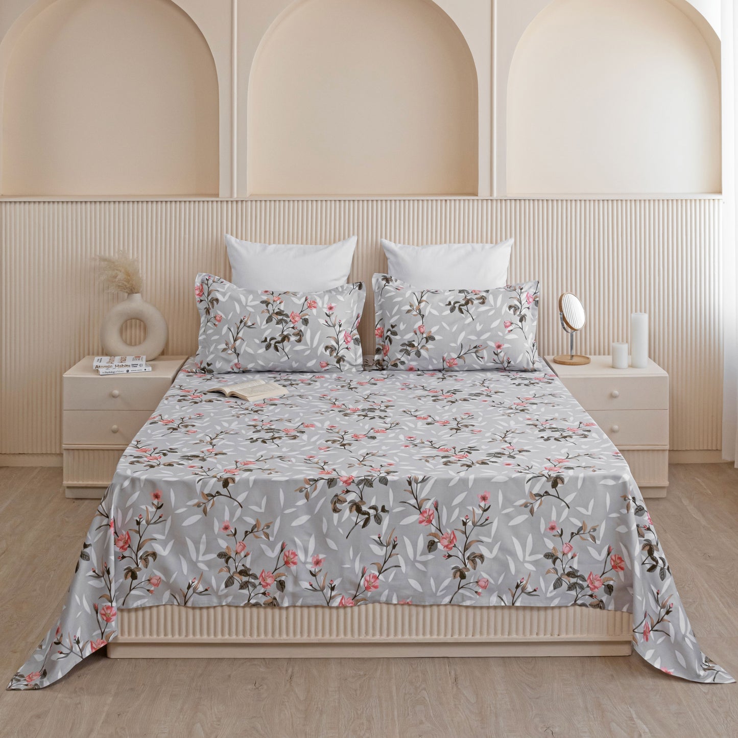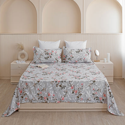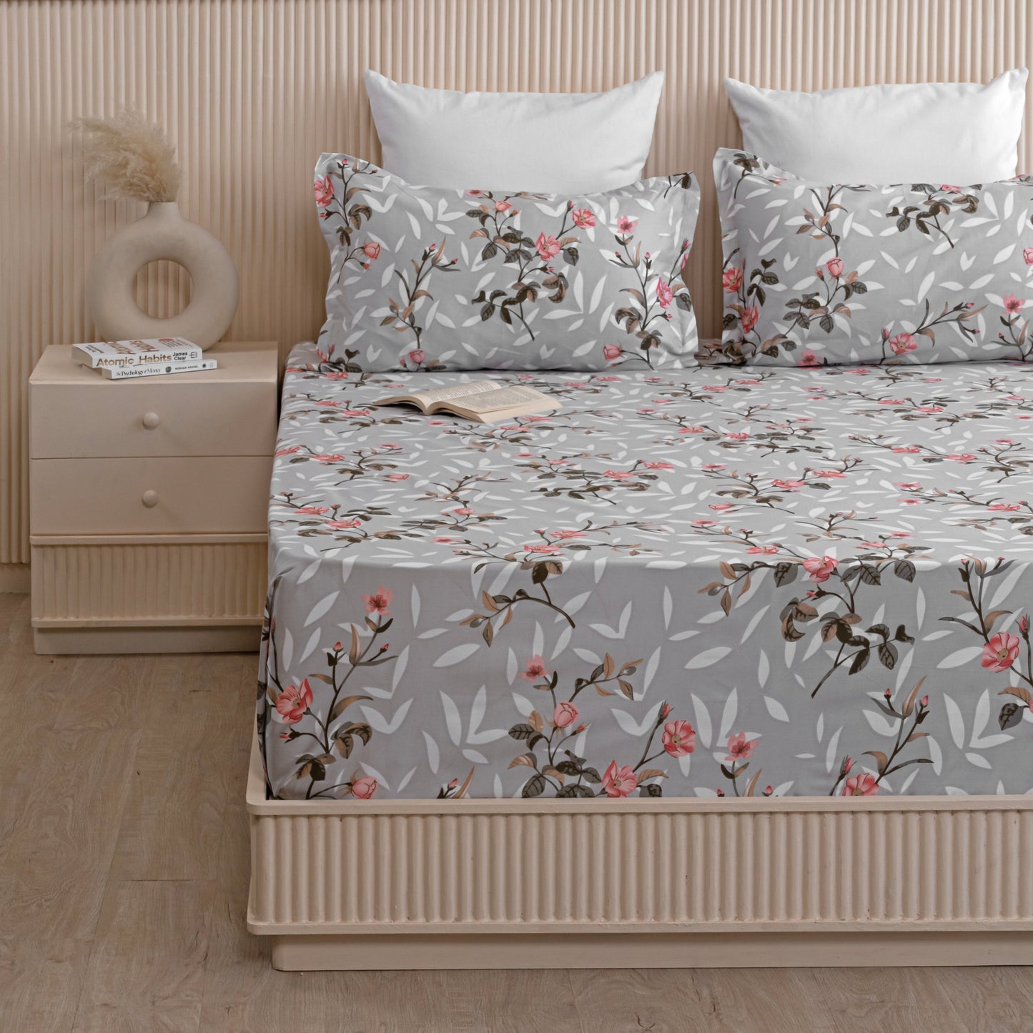 Imprimer Floral Mist - Printed Bedsheet (Gainsboro Grey)