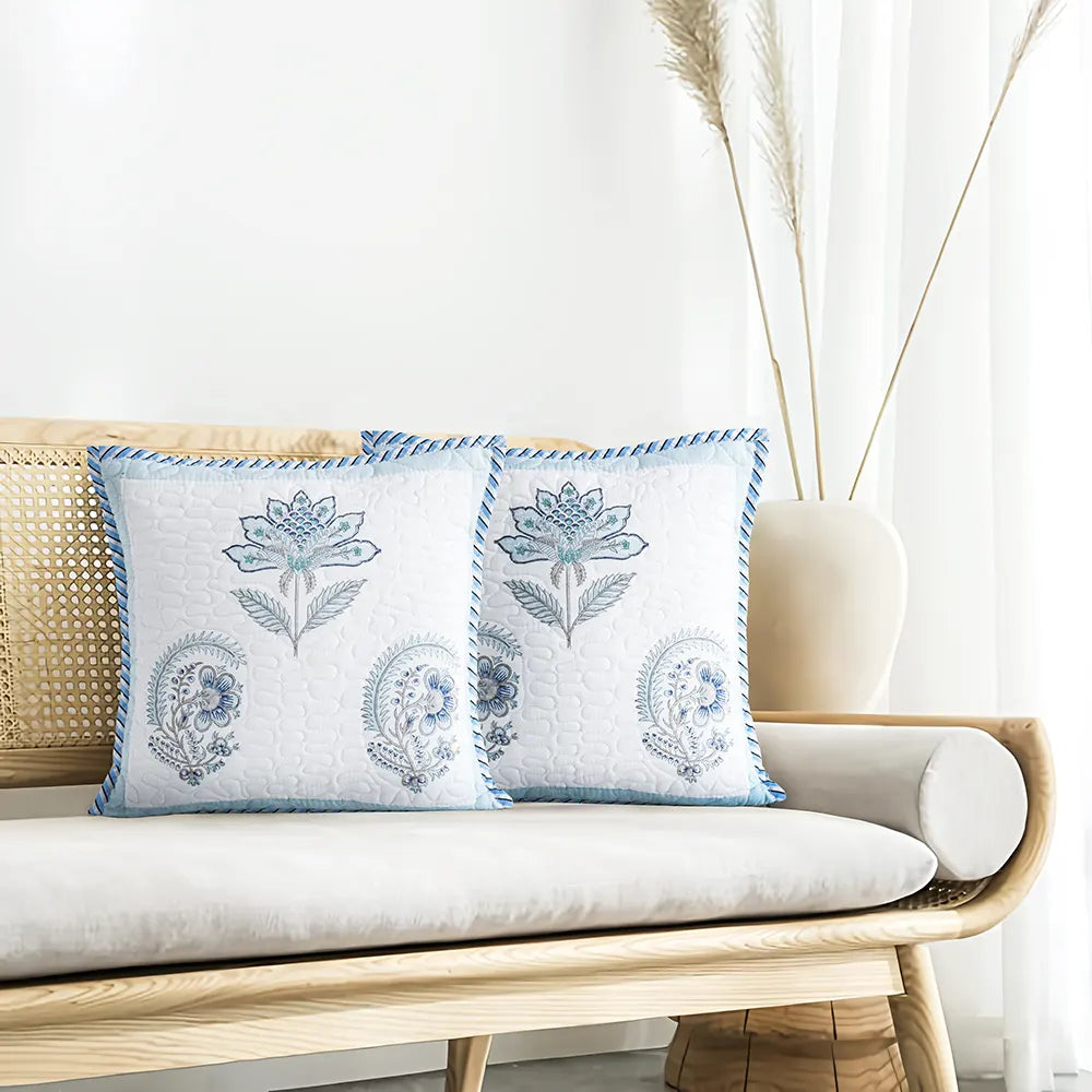 100% Cotton Hand Block Print Floral Quilted Throw Cushion Covers For Couch, Bedroom, Living Room with Flap Closure