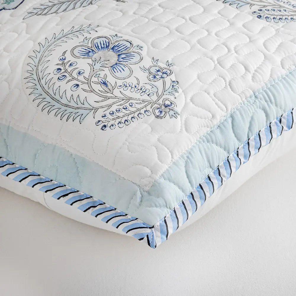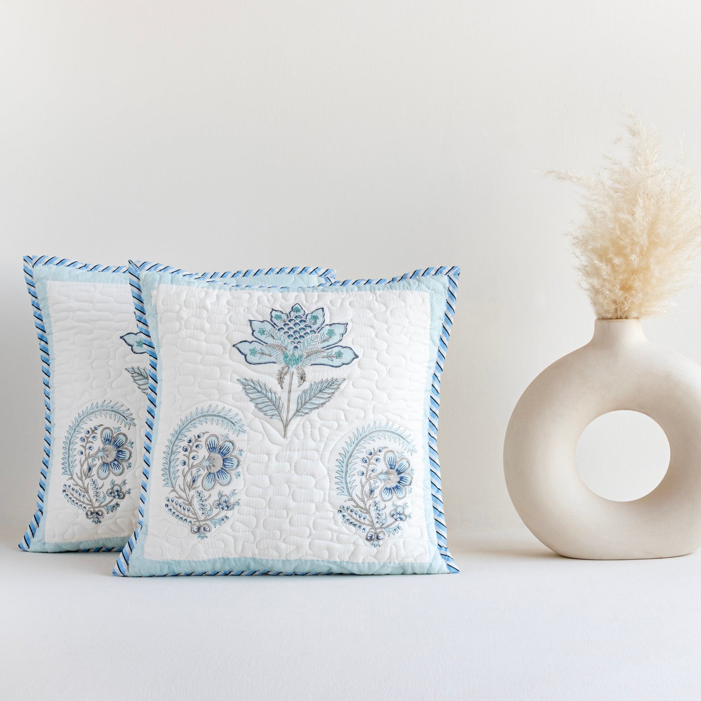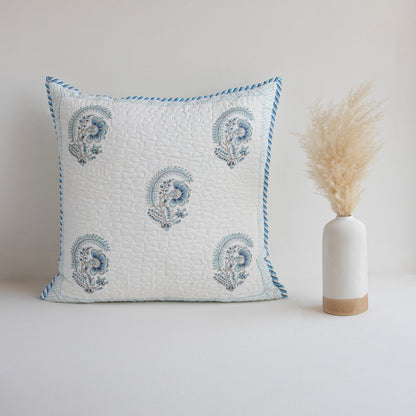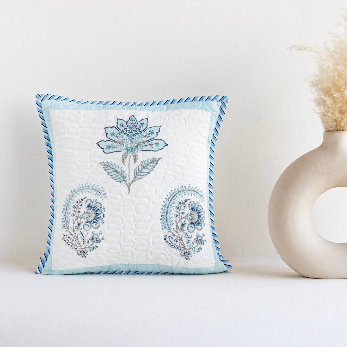 Ombre Tranquil - Hand Block Printed Quilted Cushion Cover (Baby Blue)