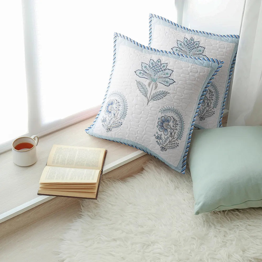 HomeMonde’s quilted couch cushion covers are comfortable and decorative soft furnishing items that become the focal point in any space. These covers are made from 100% cotton, which is durable and soft to the touch. Each piece has an intricate and captivating hand block print on it that makes it look gorgeous. Whether you're looking to refresh or beautify your sofa, bed, or armchair, our quilted cushion cover patterns are the perfect choice. Available in blue, pink, green, baby pink, and baby blue, you can opt for the colour option that complements your interior space. These colours are made from azo-free dyes and have passed the colorfastness test. Adorn your bedroom, living room, or office with HomeMonde’s quilted cushion cover designs featuring fine quilting and cotton filling for extra comfort. The beautiful hand block print is so mesmerising that it will capture everyone’s heart who enters your space. Read less