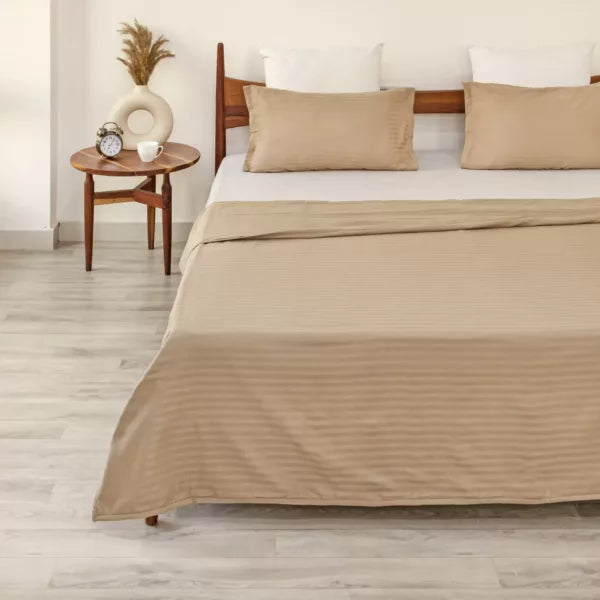 Make your goodnight’s sleep more comfortable with HomeMonde’s satin stripe dohar bed sheet. These shrink-free AC dohar bed sheets are made of 300 TC cotton with satin stripes on both sides and a fluffy flannel layer in between. Perfect during summers and early winters, HomeMonde’s dohar blanket Double is a must-have to add extra warmth and beauty to your bedroom. HomeMonde’s satin stripe cotton dohar online collection comes in multiple colour options, including pink, grey, sky blue, taupe, white, and maroon. These colours are made from azo-free dyes, so you get a safe and eco-friendly dohar blanket for summer. To clean these AC dohar cottons, prefer washing in a machine on a gentle spin using normal water. Avoid bleaching to extend the life of your cotton dohar's colours, fabric, and comfort. HomeMonde’s satin stripe dohar blankets online are a modern version of cozy quilts. Buy them to keep you warm in light winters and chilly AC summer nights. Read less