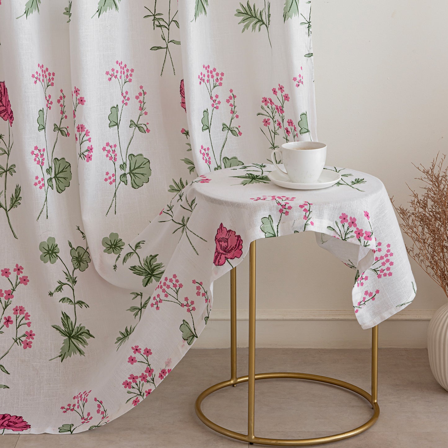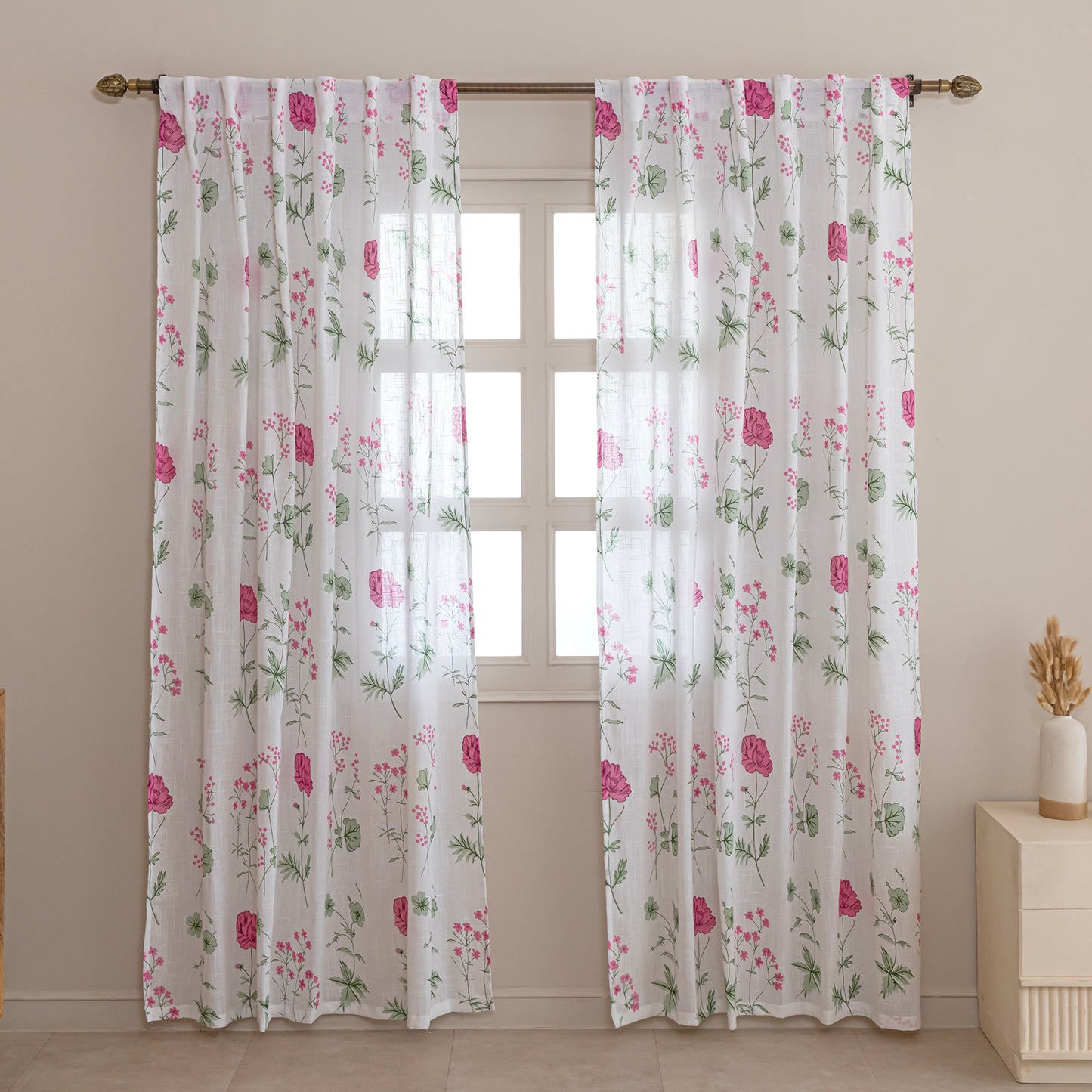 Adorn the windows and doors of your space with printed sheer curtains from HomeMonde. Our sheer printed curtain range is thoughtfully designed for bedrooms, living rooms, and offices. HomeMonde uses premium sheer cotton fabric, which lets you have sheer curtains that offer privacy. Bring a lively feel to your space with floral print sheer curtains available in pink, yellow, floral pink, and multicolor. Pick sheer curtain colours that match your taste and the interior of your space. The colours used are free from Azo substances, which ensures you make a safe choice for yourself and the environment. To wash these sheer-printed curtains, you need not put in much effort, as they are easily washable in the machine. Make a beautiful choice from our printed sheer curtains online to beautify your office, bedroom, or living room. The vibrant and eco-friendly sheer curtains from HomeMonde are made to give fresh and delightful vibes to any kind of space. Disclaimer: Sheer curtains are prone to slight shrinkage after washing. We recommend purchasing sheer curtains that are 1 feet longer than your desired size. This ensures that even after shrinkage, the curtain will continue to serve its purpose effectively and maintain its appeal over time. Read less